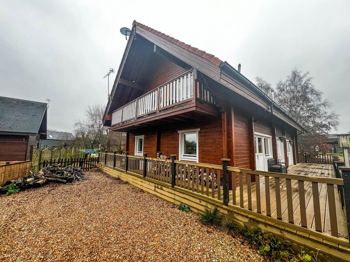 Stunning luxury log cabin situated in a beautiful wooded park, with french doors leading to balcony.