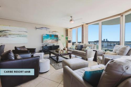 Offering massage services, Caribe Resort 910B by Liquid Life offers accommodations in Orange Beach. The air-conditioned accommodation is a 7-minute walk from Orange Beach. The accommodation provides a sauna, free Wifi throughout the property, and a 24-hour front desk. Providing a balcony and sea views, the spacious apartment includes 4 bedrooms, a living room, satellite flat-screen TV, an equipped kitchen, and 3 bathrooms with a bath and a shower. Towels and bed linen are provided in the apartment. The accommodation is non-smoking. Sightseeing tours are available within easy reach of the property. The apartment conveniently has an outdoor pool. Gulf State Park Fishing Pier is 8 miles from Caribe Resort 910B by Liquid Life, while Alabama Gulf Coast Zoo is 10 miles away. Pensacola Regional Airport is 28 miles from the property.