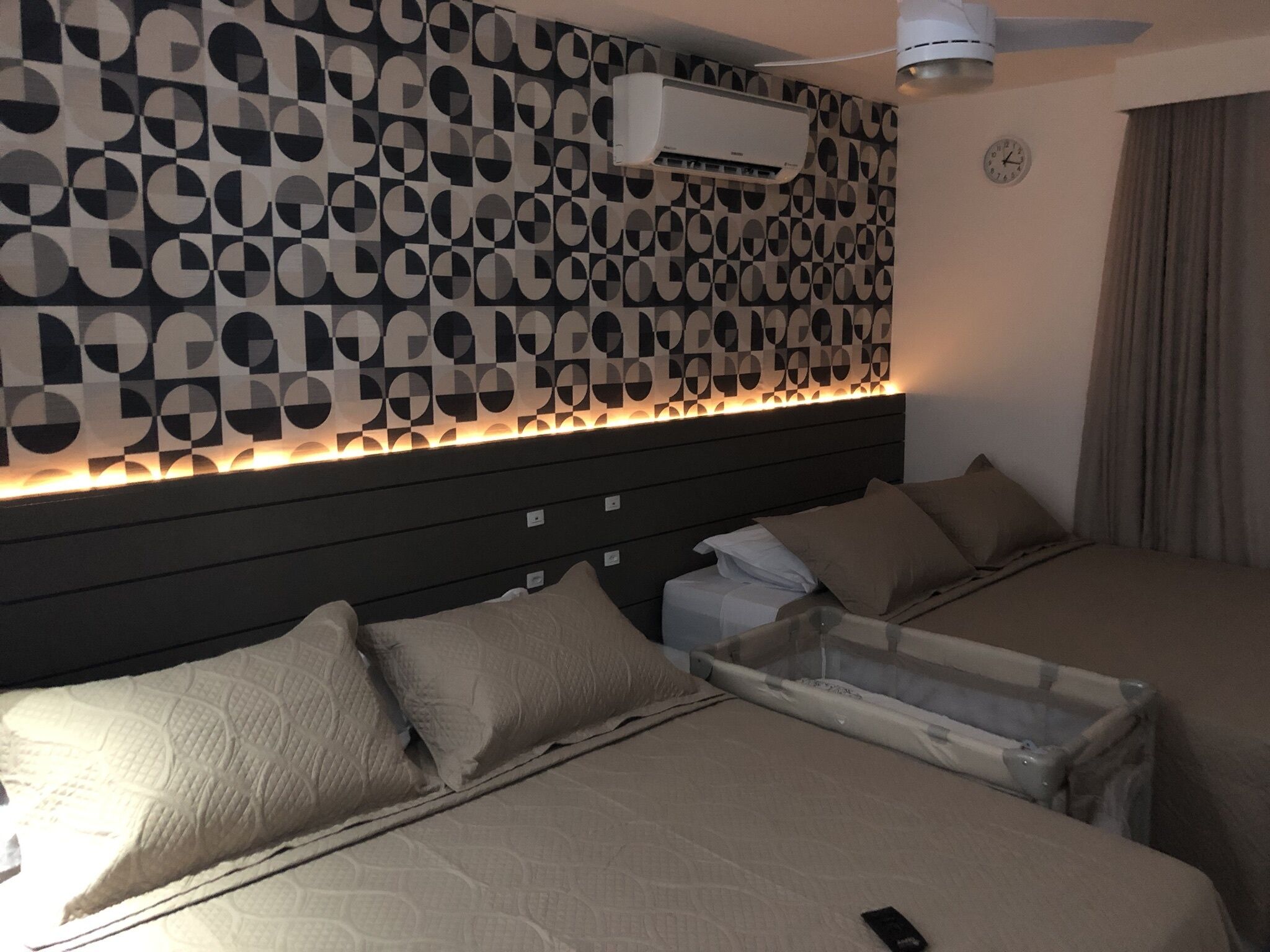 Nosso apartamento pode acomodar confortavelmente até oito pessoas, com duas camas de casal, duas camas de solteiro, sofá-cama ou dois colchões extras disponíveis. Além disso, você terá total tranquilidade e segurança com nosso serviço de segurança e portaria disponíveis 24 horas por dia. E para sua comodidade, oferecemos duas vagas de garagem.