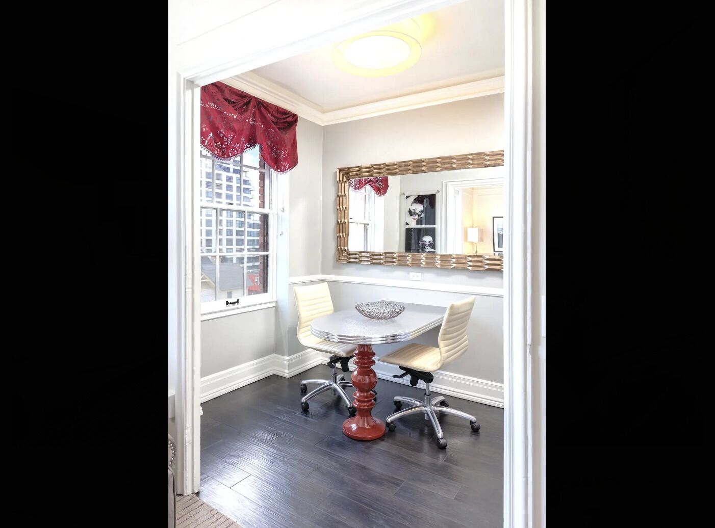 Large windows flood the room with natural light and offer views of the vibrant city streets, giving you a true urban escape.