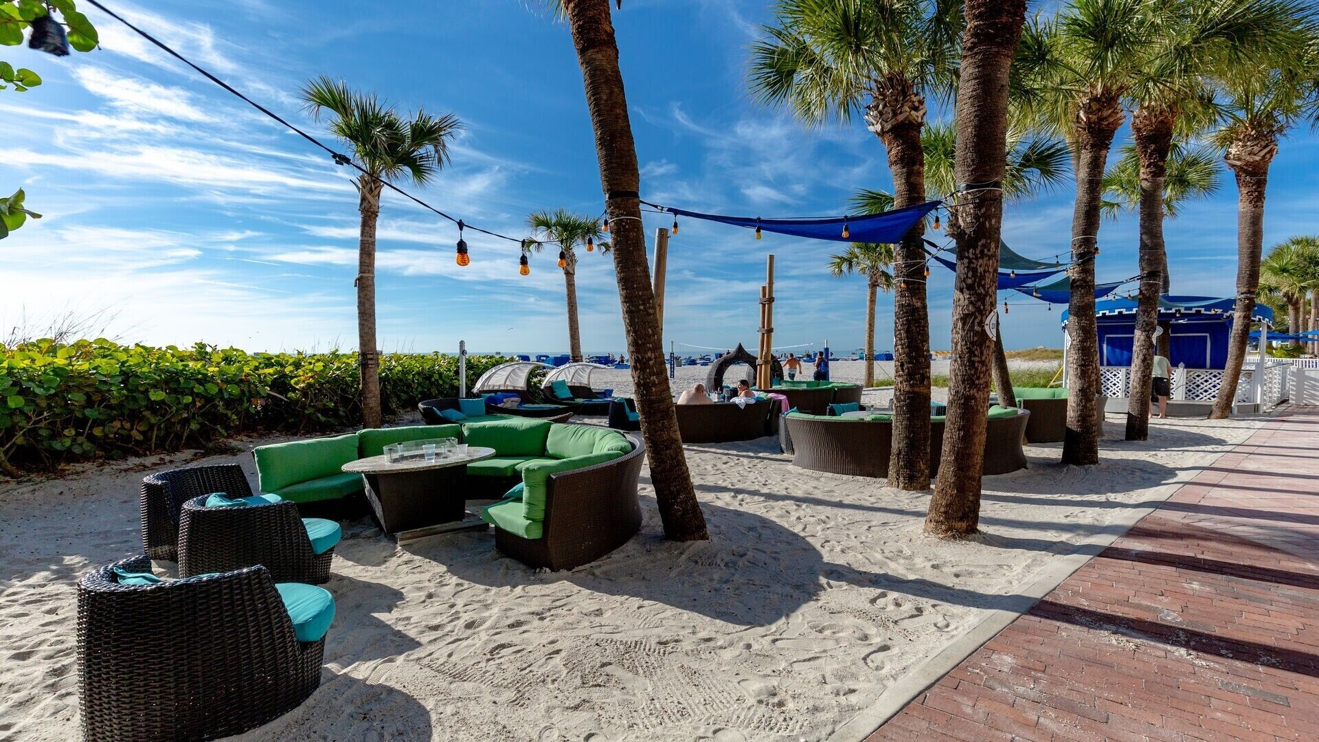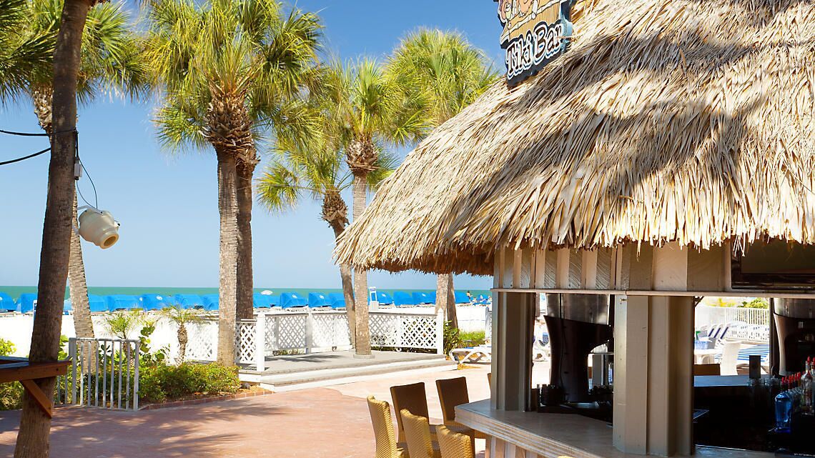 - Beachside tiki-bar with happy hour and food service;