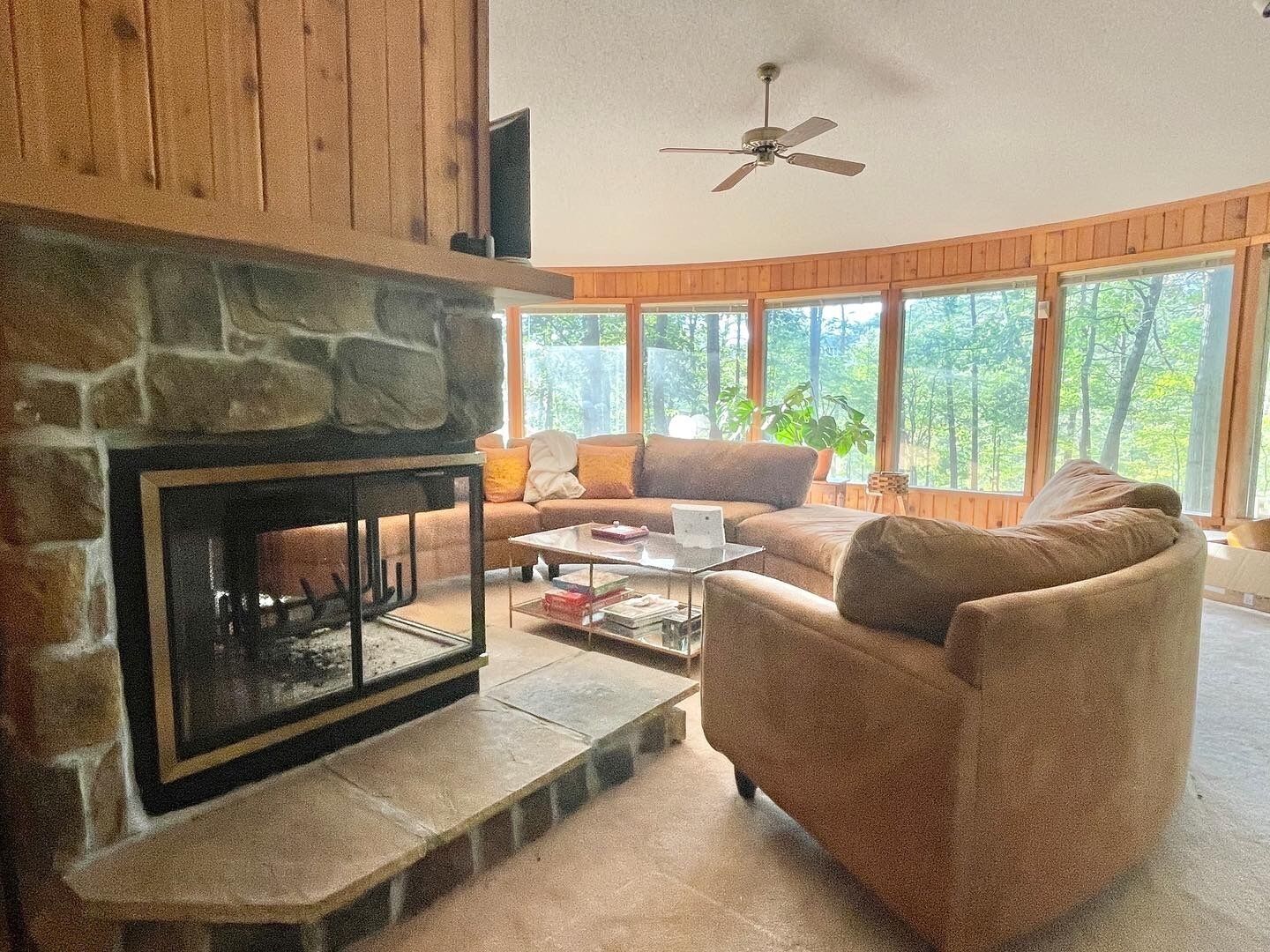 ● The open great room is the heart of the home and features a 55-inch smart TV mounted above the fireplace, providing access to your favorite cable channels via the included sling TV subscription.