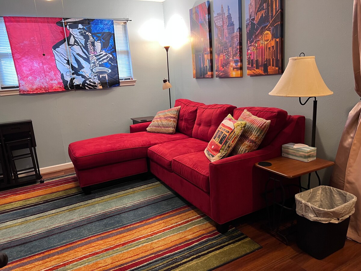 Lovely studio apartment attached to home in great neighborhood. Private entrance, full kitchen/bath, high speed internet/wifi, smart tv, and lift top coffee table that can be used as a desk. Guests have keypad check in, onsite parking and access to back patio. Perfectly located for getting around Baton Rouge. Easy access to both interstates, within 5 miles of all major hospitals/medical centers and 10 miles from Tiger Stadium. Ideal for couples, solo adventurers and business travelers.
