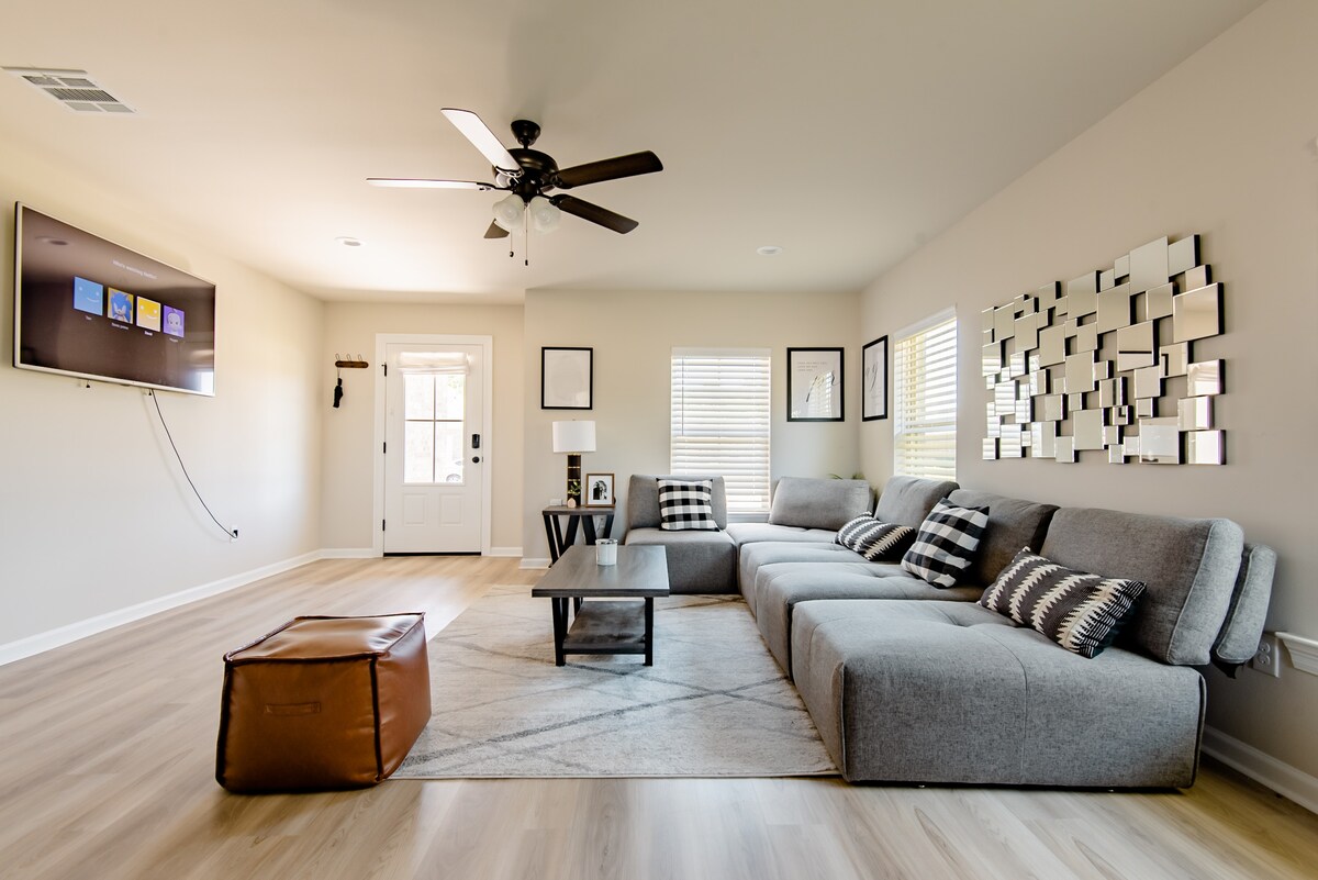 Recently renovated, this home boasts modern features like blackout curtains in every bedroom & keypad locks on doors.