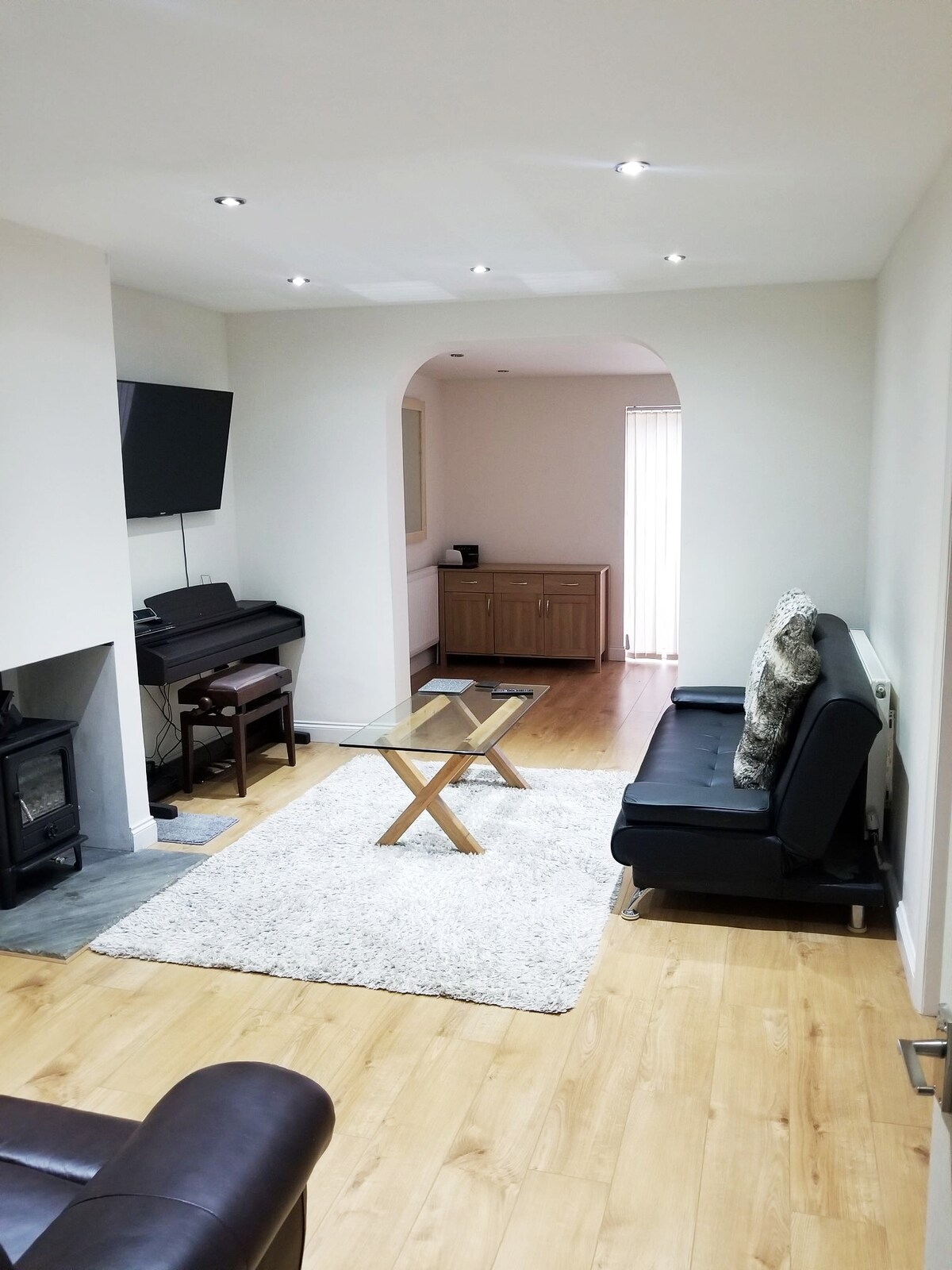 Big lawn, ample parking. Modern fitted kitchen with all major appliances. Bathroom tiled floor to wall with a massive sit in bath. Separate toilet. Could add hot and cold breakfast if requested before booking or at the time of booking.