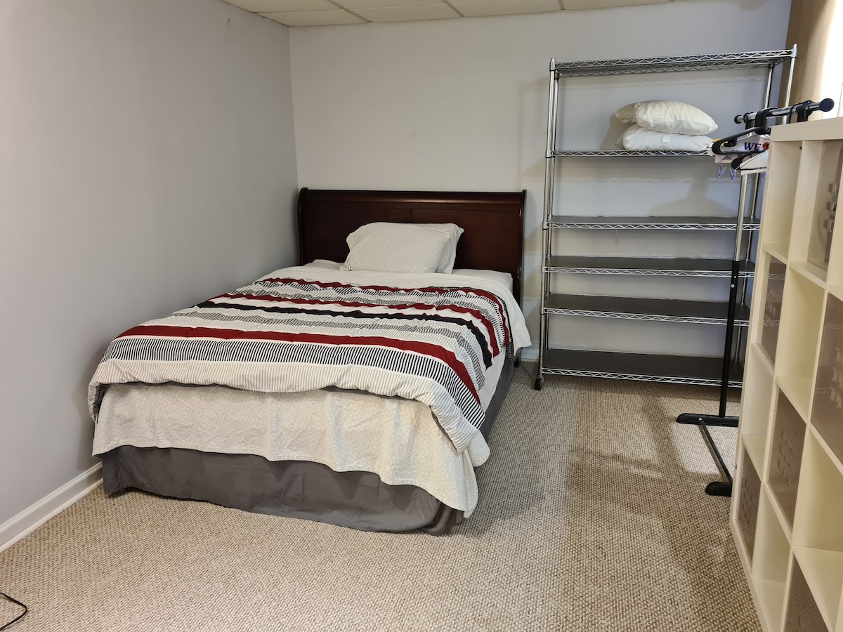 a private room with a king-sized bed in the basement of a house that is a half mile north of campus. the amenities are all the high quality that your host uses for himself, so you know that your experience will be luxurious.