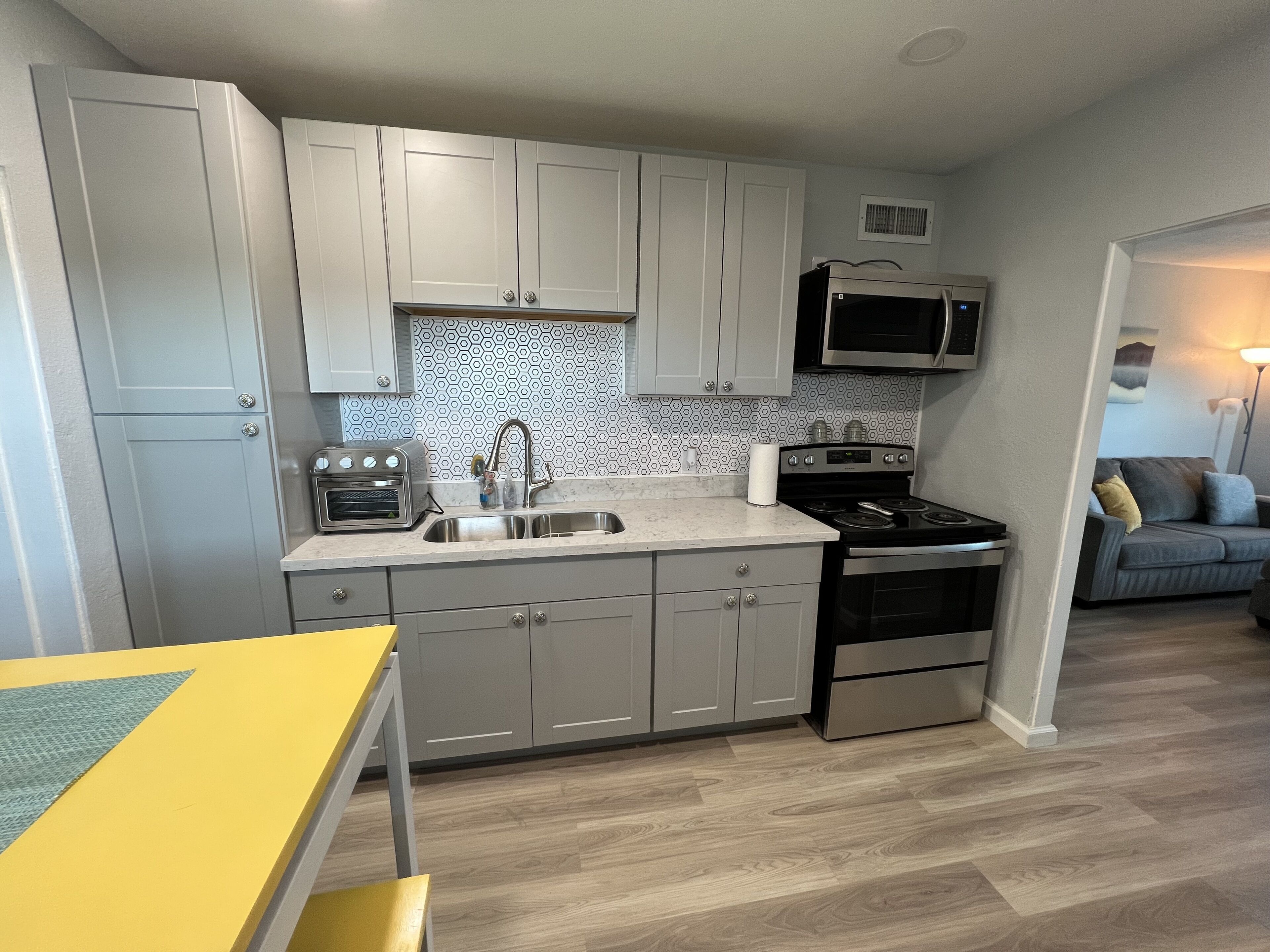 Comfortable, spacious suite with its own private entrance and all the amenities you may need (except for a stove) for a stay in the area.