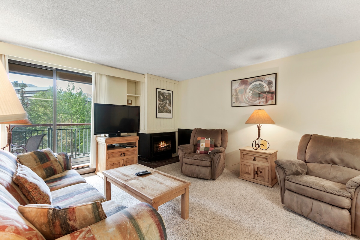 In addition to the complex hot tubs, you will also enjoy close proximity to both Main Street and the Quicksilver Super Chairlift. In the unit, you will enjoy a fireplace and a full kitchen.