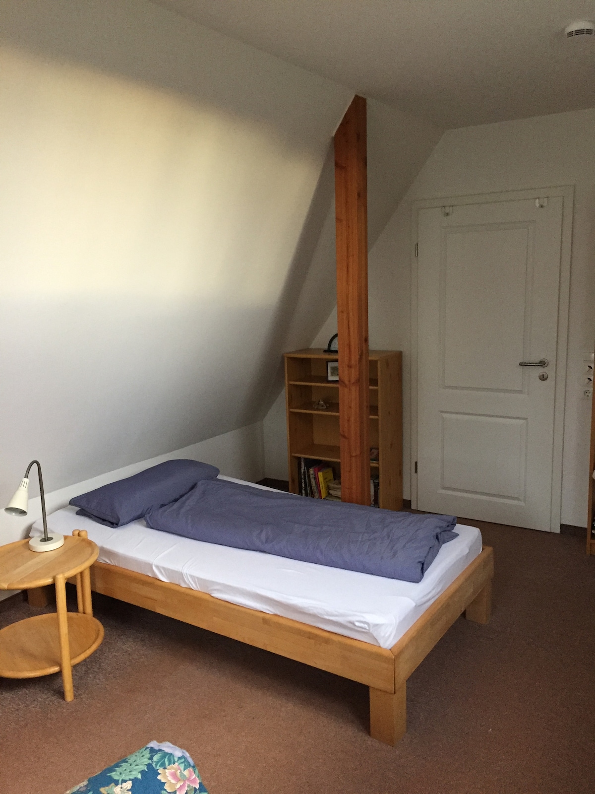 Single bed in the bedroom, workspace for comfortable working on the laptop. Kittchenette equipped for breakfast or Snack. The couch in the living room is extendable. Weekend commuters are welcome. Just write, we are happy to make an offer.