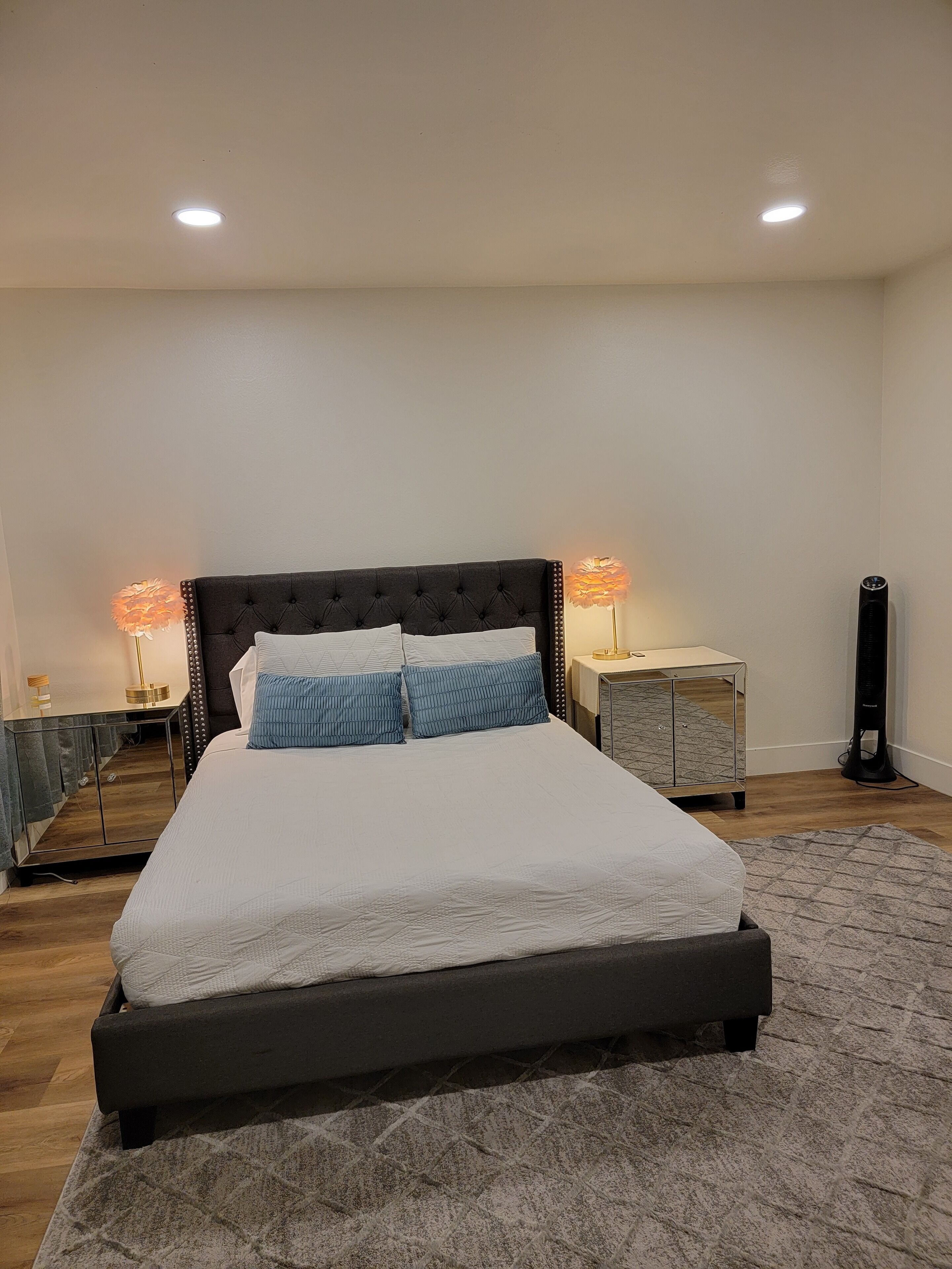 Enjoy a newly renovated in-law suite, complete with a private entrance, full bath, kitchenette, memory foam queen bed, and a private patio with seating. There is also a sleeper couch available to you. Conveniently located to airports, amusement parks, beaches, hiking & biking.