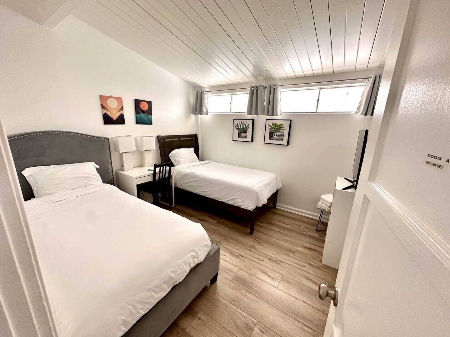 1b/1b with private entry & locks, dining/cooking/storage areas, and laundry room exclusively for guests. There is a clubhouse for guests to hang out, available first-come, first-served basis. Fast wifi and 2 smart-TVs with complimentary netfllix and sling cable TV, and desks with chairs. No shared interiors. Shared exteriors and parking.