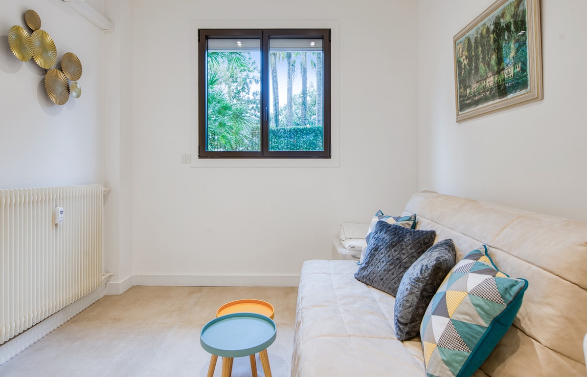 Unwind by the Mediterranean Sea! This charming one-bedroom flat is set in a secure residence with two seasonal swimming pools (including one seafront), just steps from the beach. Enjoy a sunny terrace with sea view, fibre Wi-Fi, and everything you need for a perfect stay in Cannes La Bocca. Ideal for couples, families or business travellers.