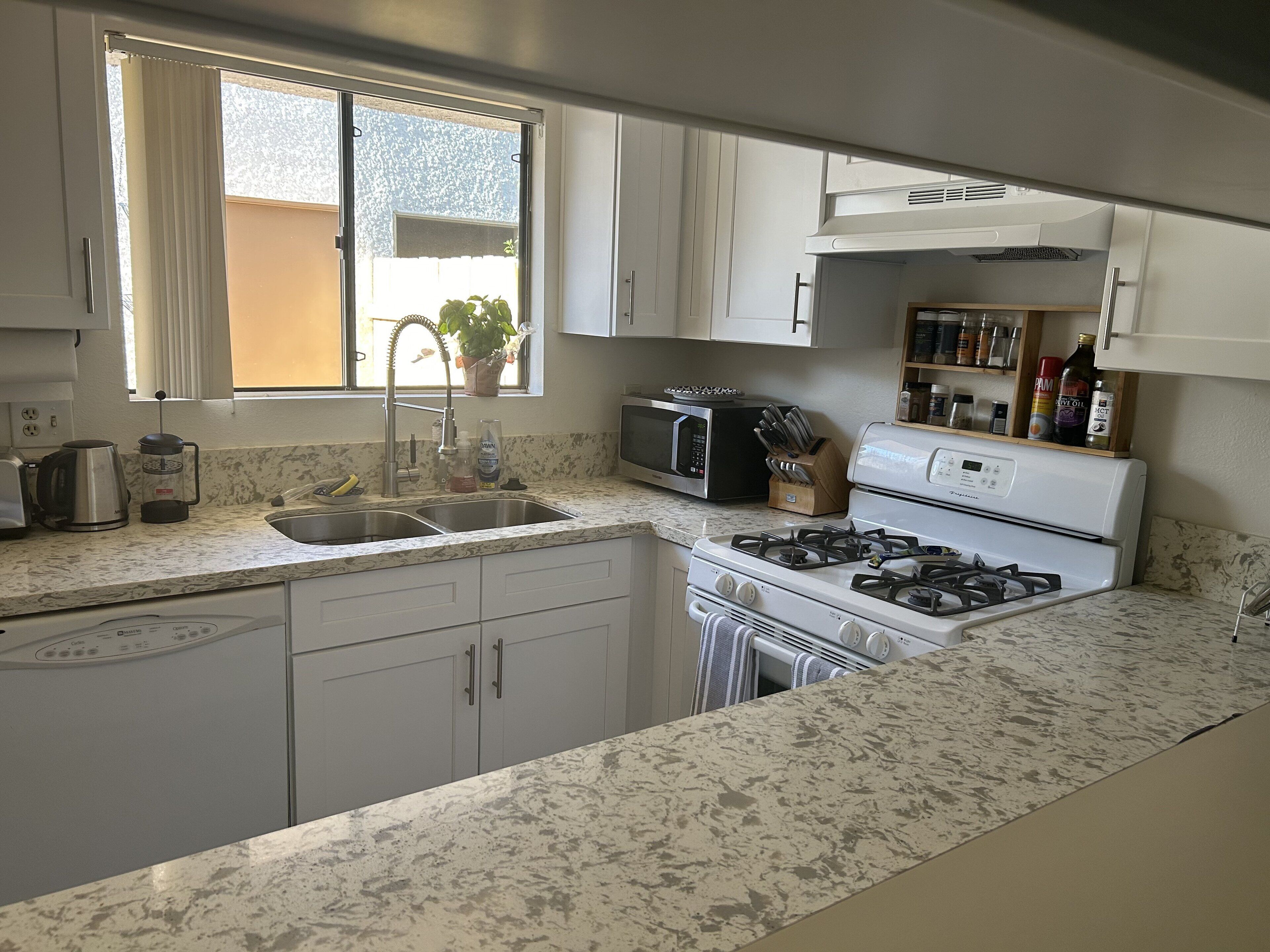Available in the property: Refrigerator, Stove, Oven, Microwave, Dishwasher, Coffee maker, Toaster, Dishes Utensils, Pantry Items, fully furnished with Smart TV in the Living Room.