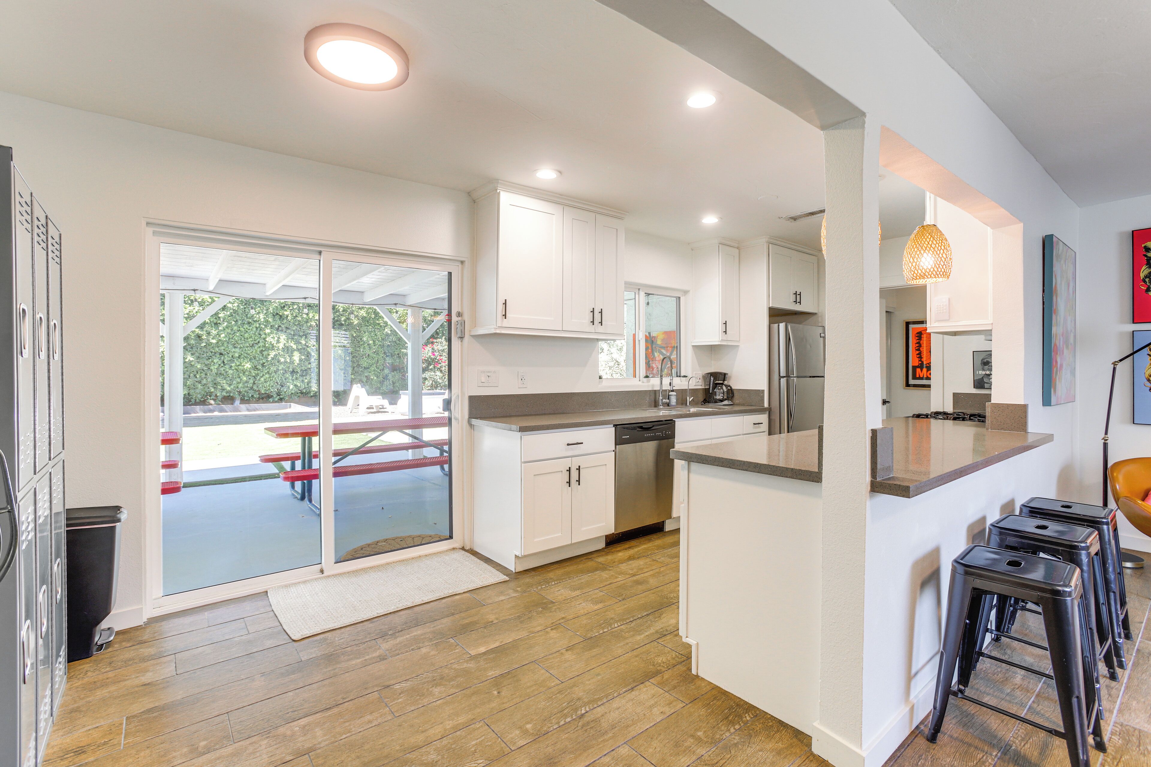 Sunny Delight Permit# BLIC-000,139-2023 offers accommodations in Cathedral City, 3.7 miles from Escena Golf Club and 6.4 miles from Palm Springs Convention Center. Guests can benefit from a patio and an outdoor pool. The vacation home also offers facilities for disabled guests. The air-conditioned vacation home is composed of 2 separate bedrooms, a living room, a fully equipped kitchen with an oven and microwave, and 2 bathrooms. A flat-screen TV with satellite channels and a DVD player are provided. For added privacy, the accommodation features a private entrance. Guests at the vacation home will be able to enjoy activities in and around Cathedral City, like cycling. A children's playground is also available for guests at Sunny Delight Permit# BLIC-000,139-2023. Palm Springs Visitor Center is 6.8 miles from the accommodation, while Palm Springs Aerial Tramway is 6.8 miles away. Palm Springs International Airport is 3.7 miles from the property.