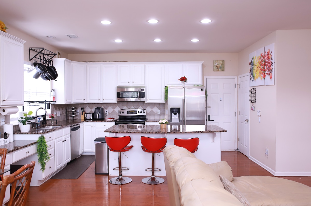 Charlotte Retreat: Luxury 4BR Heaven offers accommodations in Charlotte, 1.9 miles from Spectrum Center and 2.1 miles from NASCAR Hall of Fame. This property offers access to a terrace, free private parking, and free Wifi. Outdoor seating is also available at the vacation home. The air-conditioned vacation home consists of 4 bedrooms, a living room, a fully equipped kitchen with a dishwasher and a kettle, and 2 bathrooms with a bath and a hair dryer. Towels and bed linen are available in the vacation home. For added privacy, the accommodation features a private entrance. Blumenthal Performing Arts Center is 2.1 miles from Charlotte Retreat: Luxury 4BR Heaven, while Mint Museum of Craft Design is 2.3 miles from the property. Charlotte Douglas International Airport is 8.1 miles away.