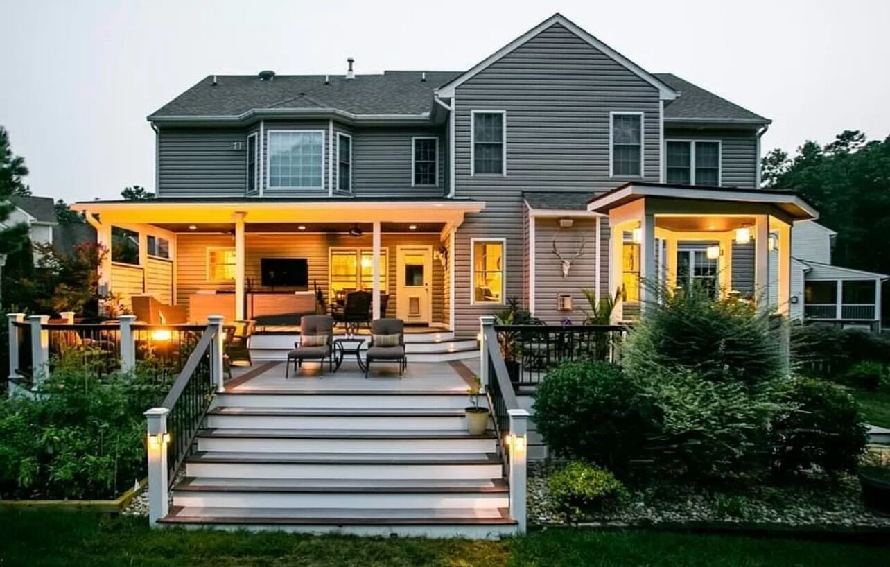 Lots of lighting all around house. such as driveway lights, too bright front door lights. lots and lots of parking for trailers and big trucks probably one of the biggest driveways you've ever seen. a chandelier in the garage And you can move stuff around and PUT YOUR CAR OR BIGGER IN THE GARAGE with the workout center and a foosball table and cornhole. a beautiful Glass all season room on the back with doors opening so to cool off and ceiling fan in it. very large lot two and a half acres. lots of shopping and a restaurant you're not going to believe called boathouse Sunday park that's near. also lots of restaurants you can go to as well as have delivered to the house. and some unusual bars is uptown Alley this number one largest bowling Alley bar restaurant in the country. Also Pocahontas Park,. the Richmond zoo, kids science museum, zip lining. and a chandelier in the game room as well as a wi-fi speaker for your stereo needs. two large rooms with large TVs in them.