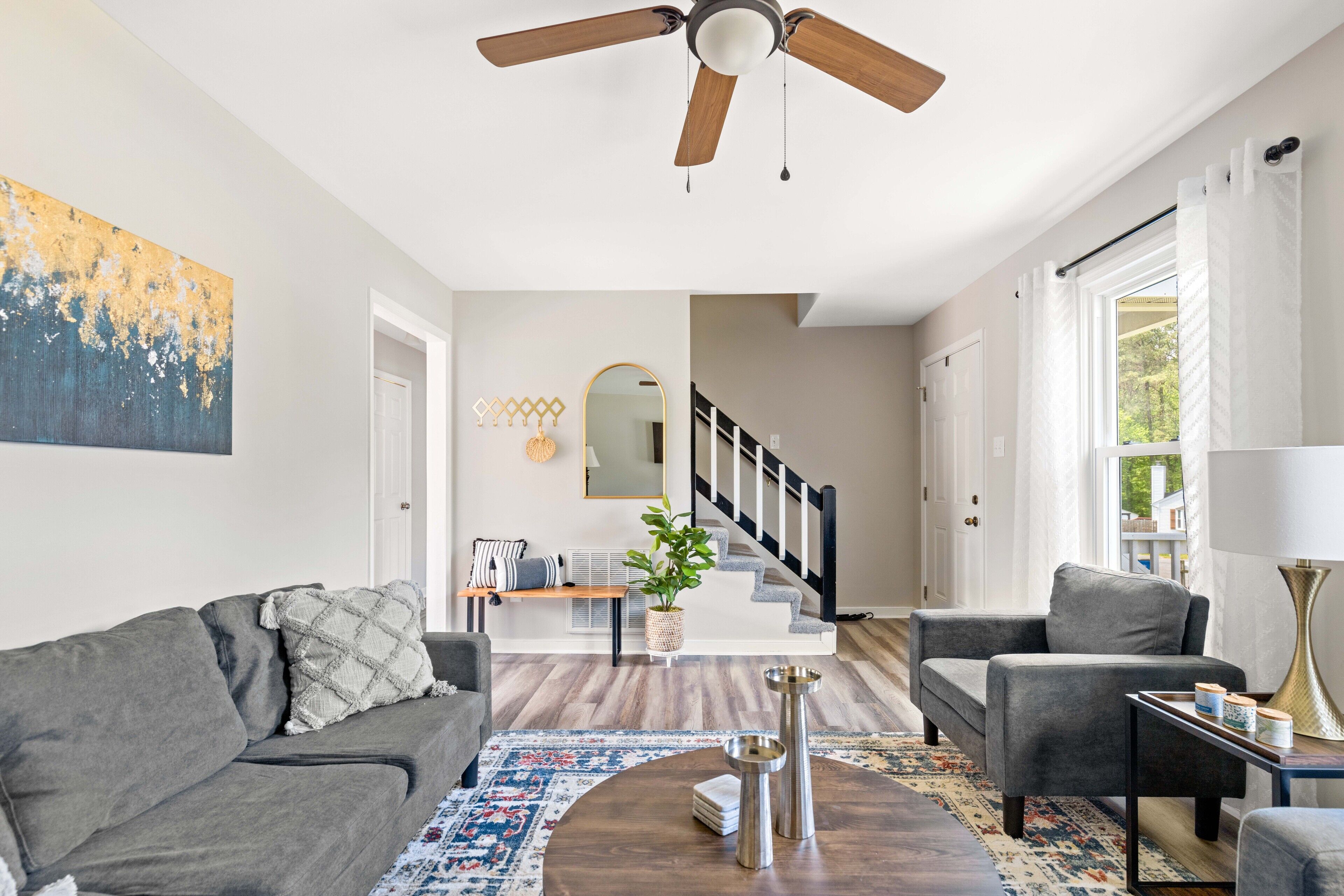 This spacious split-level home offers modern comfort and charm, starting with a welcoming front patio, large yard, and a convenient driveway.