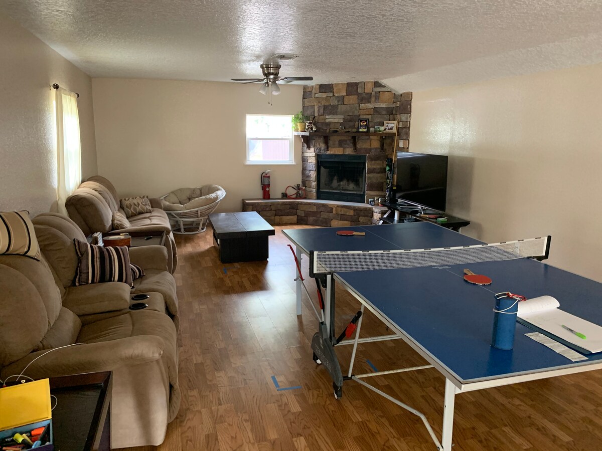 - "Very relaxing stay, lovely neighborhood and comfy beds. Loved the rain shower head. House is so clean and my kids loved the air hockey table. Great find for a great price" - "I would have liked to have known that l would be staying in a MH park and pictures of the exterior were not given. However, don’t be deterred by the area; as the home is nicely decorated, remodeled and clean. Not bad at all for an overnight stay." - "Needs a toaster and pans for oven overall good "