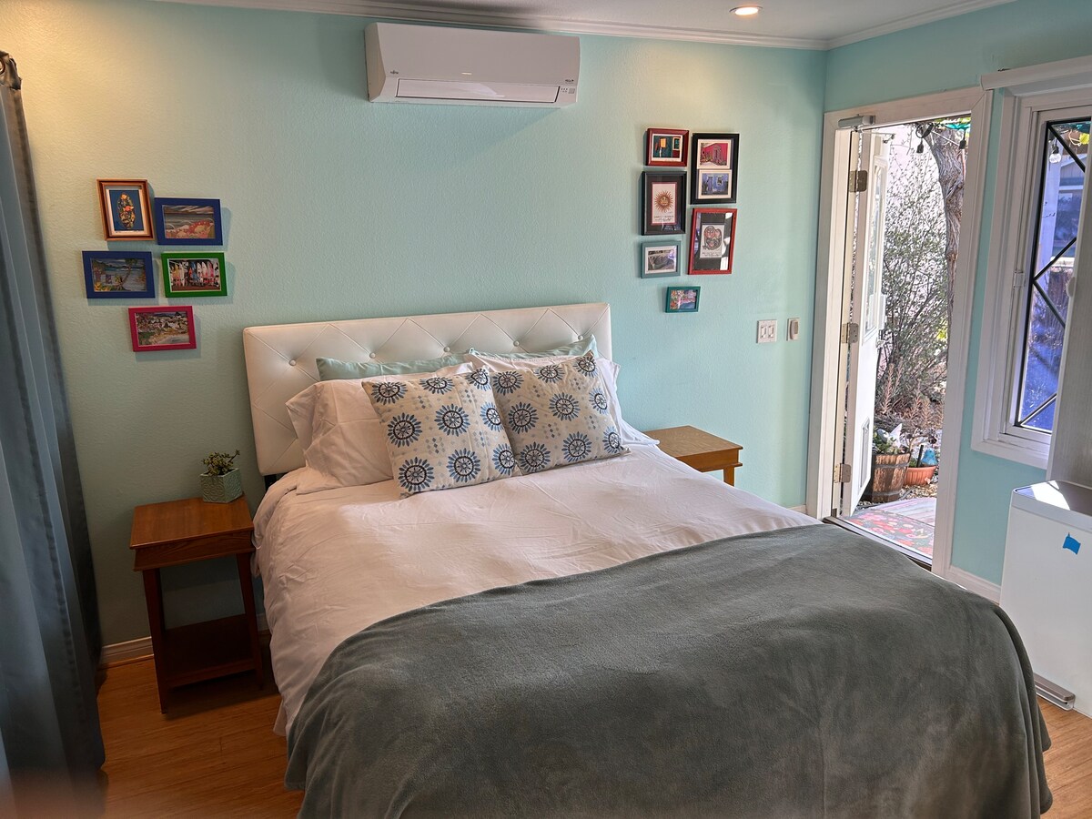 • Air conditioning & heating are controlled by your hosts. A/C and heating are typically turned off unless the hosts feel it's necessary to turn it on. The weather is mild all year round since we live near the ocean and our house is well insulated. Quiet Cool System will be turned in the afternoon on hot days to bring cool air from outside. The bedroom has a powerful and quiet ceiling fan system that can regulate the room temperature quickly.