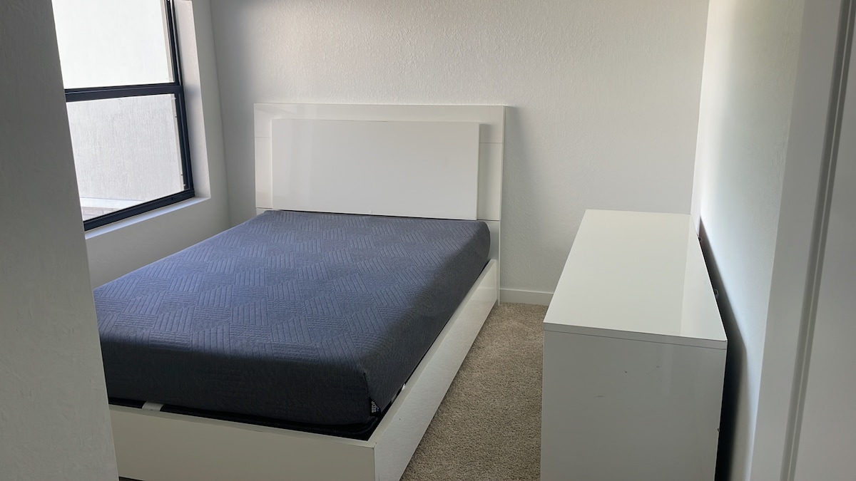 Kick back and relax in this calm, stylish space. Fully furnished room, with TV, Queen bed with brand new memory foam mattress, mini fridge, dresser and a beautiful view. Private bathroom