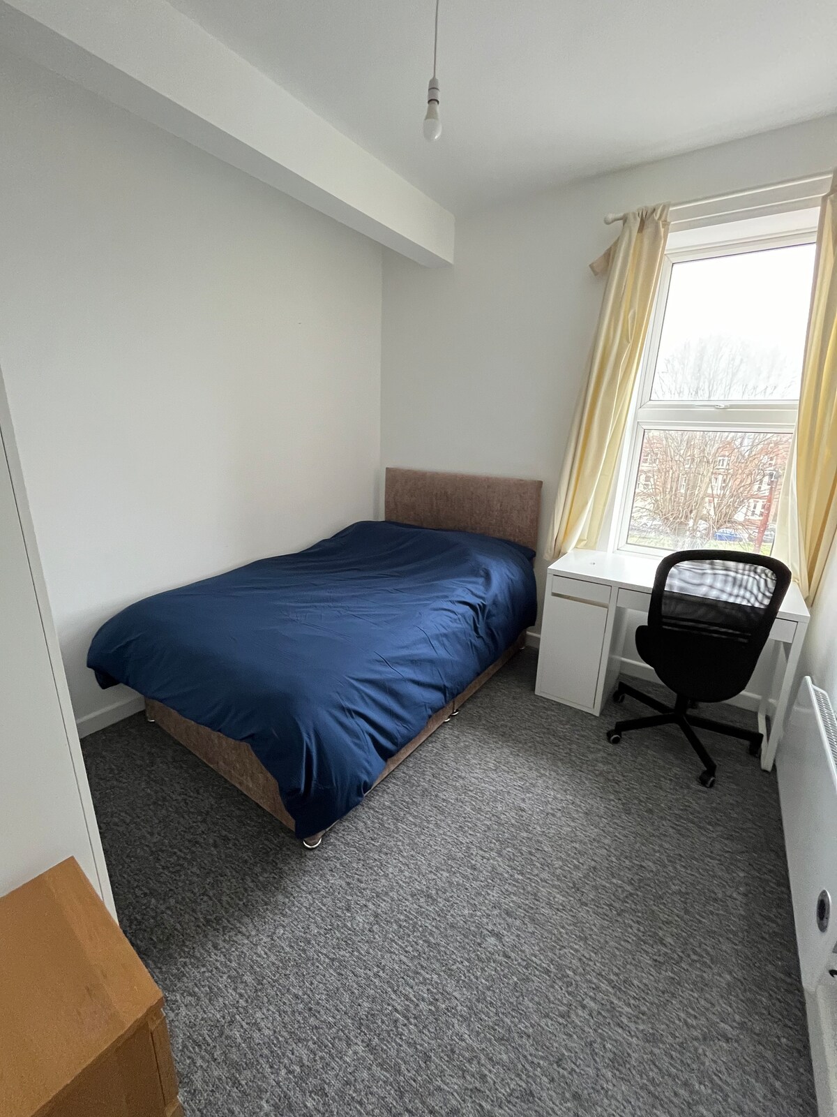 The room is very spacious and light with a walk in wardrobe, chest of drawers, desk and plenty of storage. The bed is 4ft with a firm mattress.