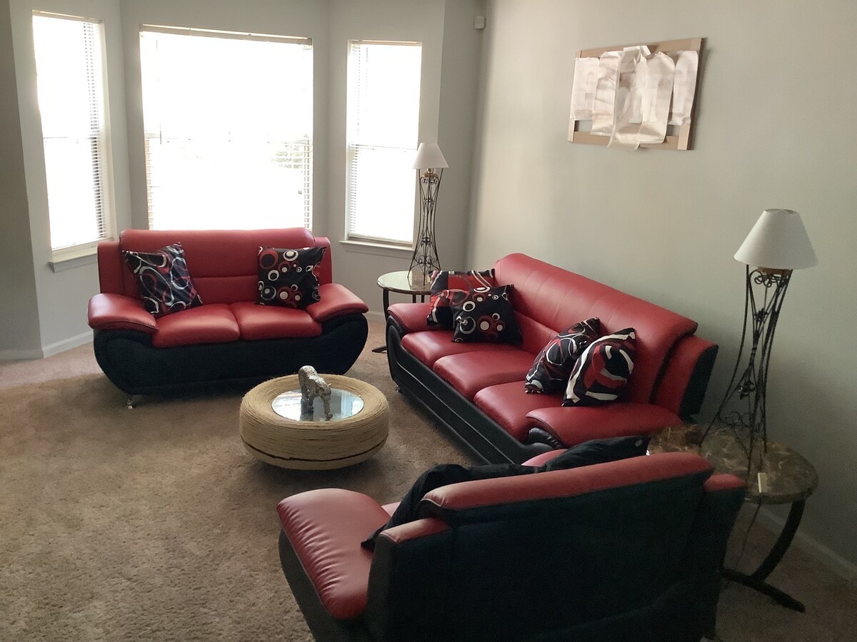 Gorgeous, clean and comfy home in quiet neighborhood! The ENTIRE HOME is yours - NO SHARING! 2 Bedrooms, 2 bathrooms. Smart TVs in every bedroom. Great back yard, fully stocked kitchen, fast WiFi, drive way parking. Beautiful ranch home convenient to I-20, shopping, and food. Living room also has a Smart TV. A perfect space for families to enjoy. This home is perfect for a visiting family, traveling professionals, and families needing a place to stay during personal home improvements.