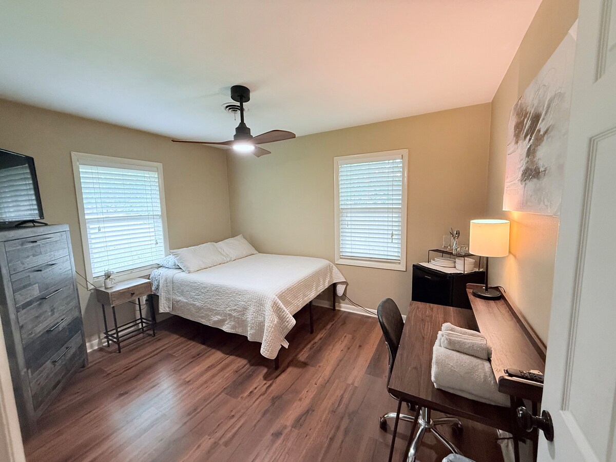 4.5 miles from Cape Fear Valley hospital and convenient to I-95,"The Sapphire" room has been updated with tasteful, brand new furnishings and has everything you may need during your stay. Stream your favorite shows on your bedroom's 40" Smart TV, and enjoy a cool beverage in your own in-room mini fridge. Bedroom door has coded entry lock for enhanced privacy. Private, clean and cozy!