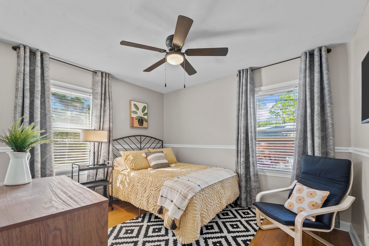 Very comfortable bedroom in a spacious 1 story home. Room has SmartTV, heavy darkening curtains, blinds and a white noise machine. The kitchen is well equipped and finished with beautiful granite counters. Bed linens and bath linens are included. All rooms professionally cleaned between guests. Home is professionally cleaned each month.