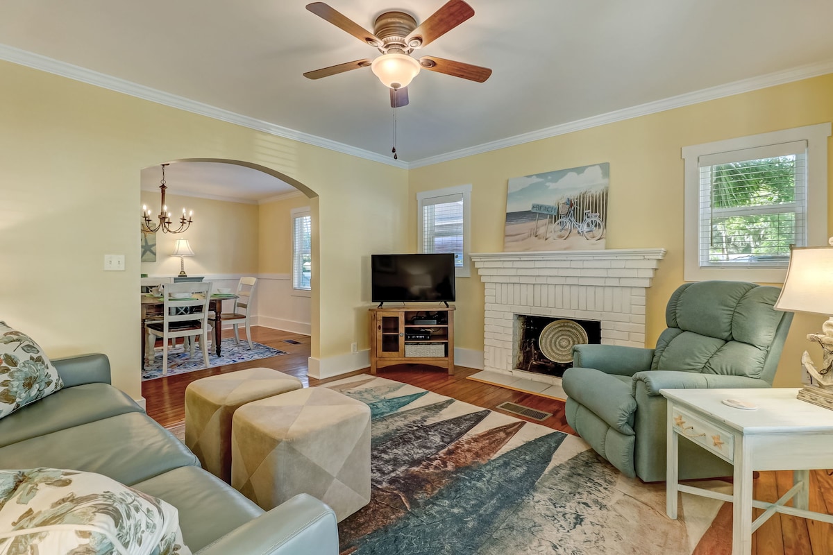 This cozy 3 bedroom charming cottage is located perfectly on Amelia Island between historic downtown and the Atlantic Ocean is available for 30+ nights! Bike or walk 6 blocks to the hip downtown or 2 blocks to Central Park! The beach is just a couple minute drive, too! The large backyard is fully fenced with a patio and grill for relaxing! There is a W&D, along with fast wi-fi, cable, and central heat & air.