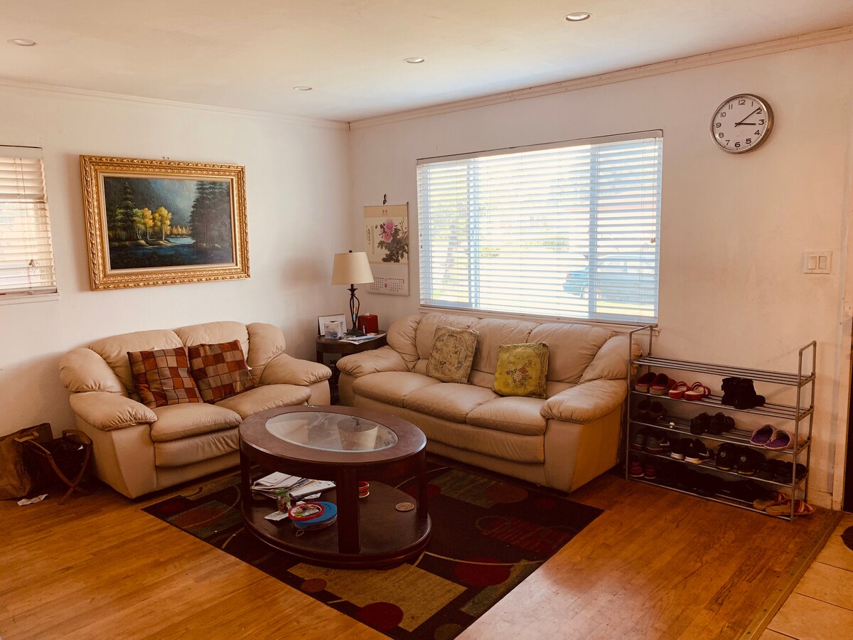 this unique room is being offered on Airbnb for the first time. plenty of parking near Tesla Amazon 580 freeway 880 freeway shopping centers gyms. The room is fully remodeled with Pergo floors and a couch,