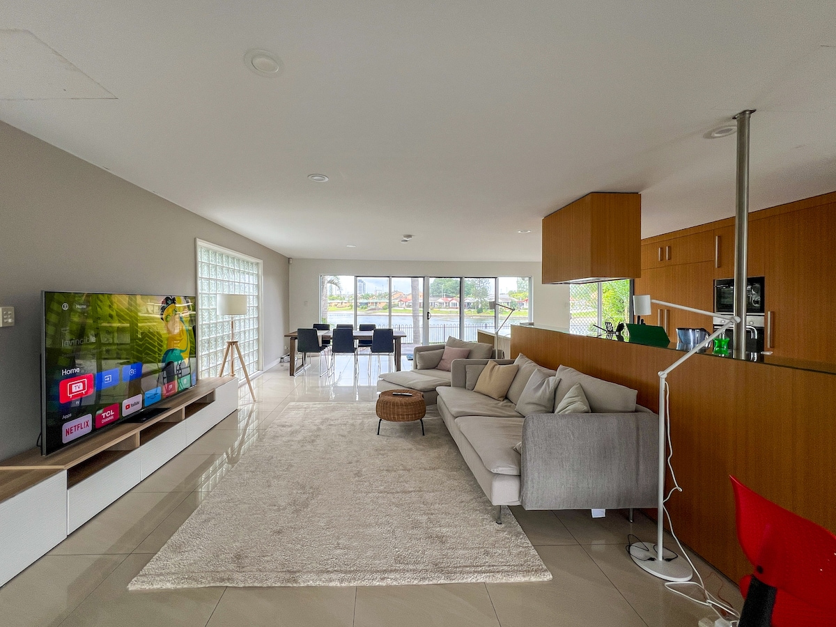 Just 1.2 miles from Budds Beach and a 19-minute walk from SkyPoint Observation Deck, 3 m Luxury Waterfront Villa in Paradise Pets Welcome features accommodations in Gold Coast with an outdoor swimming pool, a garden, and a terrace. This property offers access to a balcony and free private parking. The property is a 19-minute walk from Surfers Paradise Beach and within a few steps of the city center. With free Wifi, this 4-bedroom villa provides a flat-screen TV, a washing machine, and a fully equipped kitchen with a dishwasher and oven. The air-conditioned unit at the property features a hot tub and a dressing room. The property has an outdoor dining area. Narrowneck is 1.8 miles from the villa, while Gold Coast Convention and Exhibition Centre is 2.8 miles away. The nearest airport is Gold Coast Airport, 13 miles from 3 m Luxury Waterfront Villa in Paradise Pets Welcome.