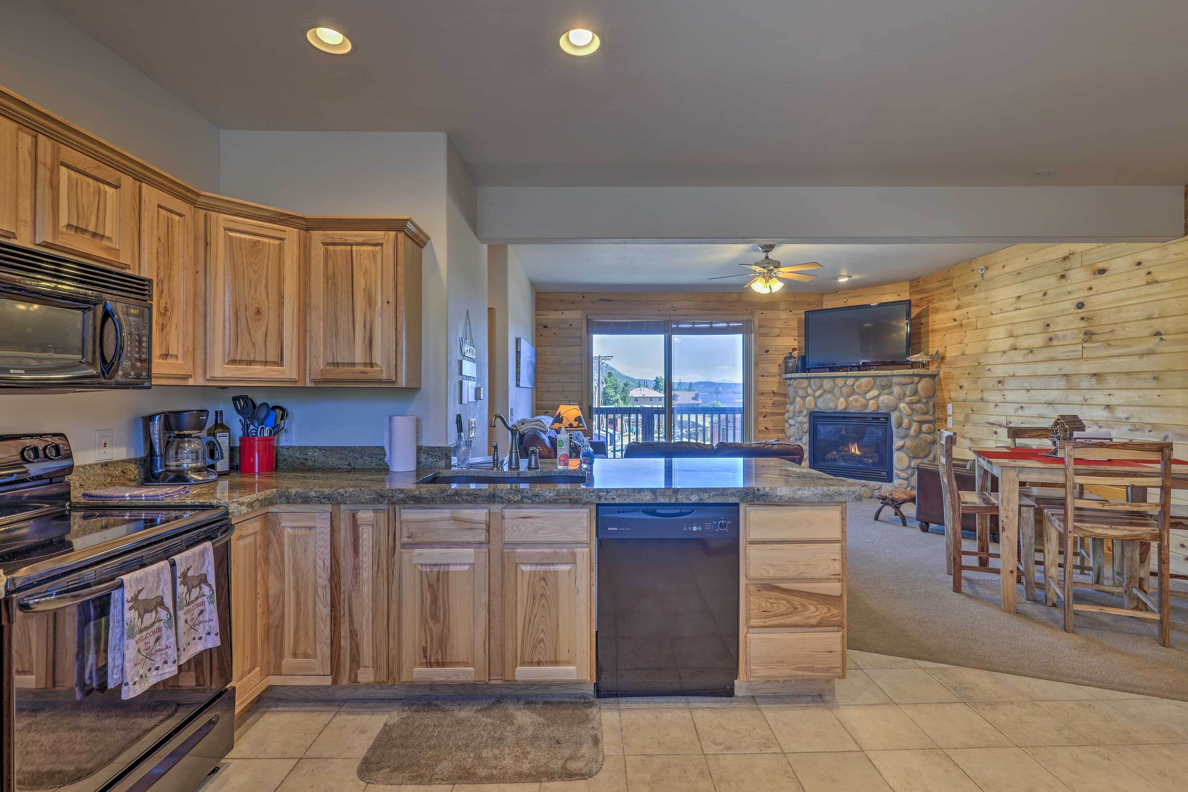 Prepare delicious meals in the fully equipped kitchen, complete with matching stainless-steel appliances and ample cabinet space. The living area offers an open floor plan that allows the entire group to stay connected during your stay. Gather around the gas fireplace or enjoy a cup of morning coffee on the balcony.