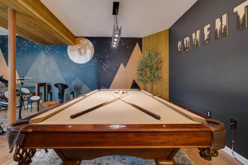 Sauna - Hot Tub - Theater - Arcade - Family Fun is a recently renovated vacation home in Massanutten where guests can make the most of the terrace and barbecue facilities. Built in 2023, the property includes sauna and hot tub. There's an outdoor fireplace and guests have access to free Wifi, free private parking, and an electric vehicle charging station. The air-conditioned vacation home consists of 6 bedrooms, 2 living rooms, a fully equipped kitchen with a dishwasher and a coffee machine, and 4 bathrooms with a hot tub and bathrobes. Towels and bed linen are featured in the vacation home. There's also a seating area and a fireplace. For guests with children, the vacation home offers both an indoor and outdoor play area. The vacation home has a picnic area where you can spend the day outdoors. Massanutten Resort Water Park is 2.1 miles from Sauna - Hot Tub - Theater - Arcade - Family Fun, while University Park is 13 miles away. Shenandoah Valley Regional Airport is 20 miles from the property.