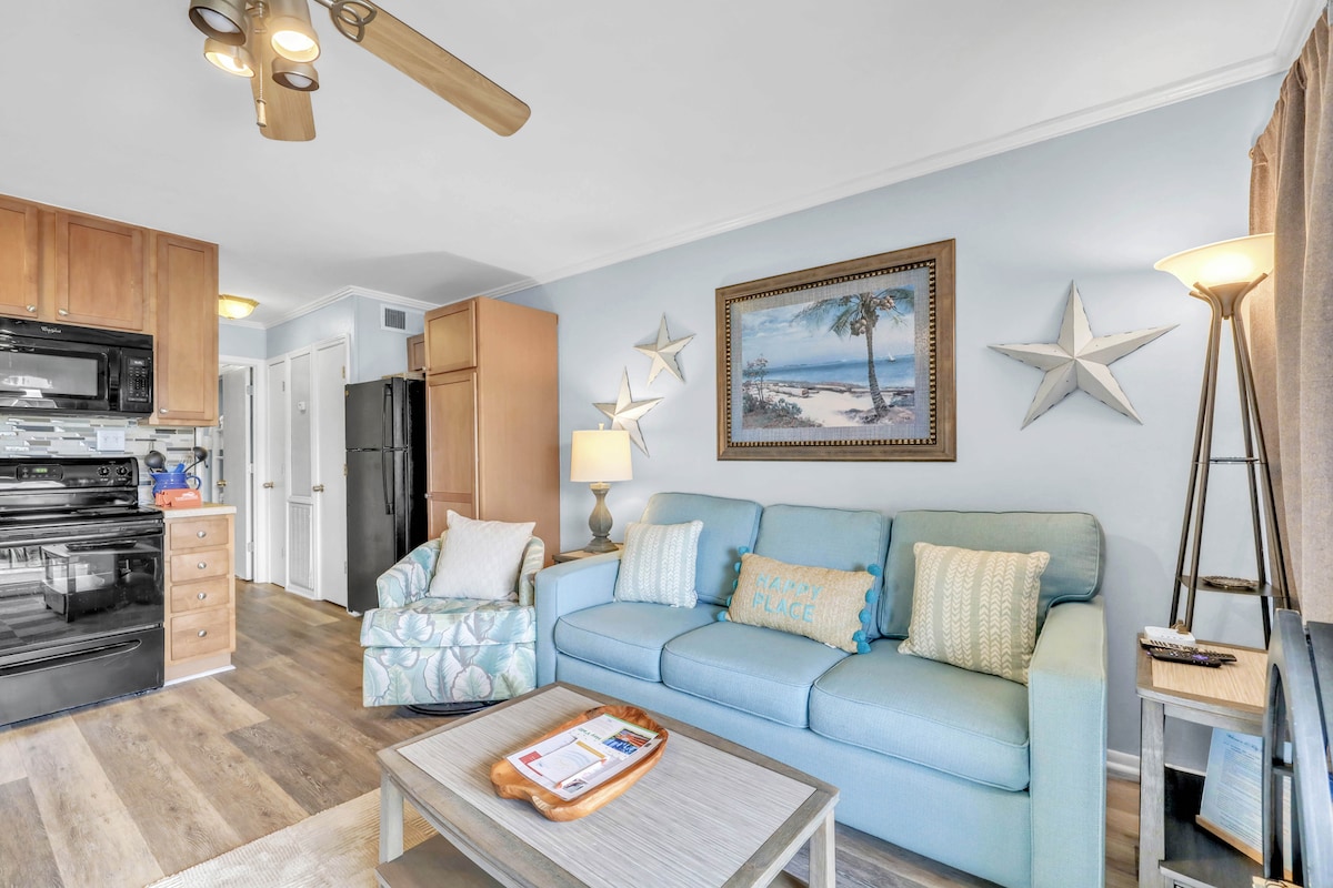 Step inside your sunny sanctuary, boasting a welcoming one-bedroom layout, perfect for unwinding after a day of coastal adventures. The private balcony beckons for leisurely mornings with coffee in hand or sunset soirées with your favorite cocktails. Whip up delectable meals in the fully equipped kitchen, with modern appliances for effortless culinary creations and a dishwasher for hassle-free cleanup. As night falls, sink into relaxation in the cozy living room, where a smart TV promises endless entertainment. Plus, stay connected with complimentary WiFi and stay cool with central air-conditioning.