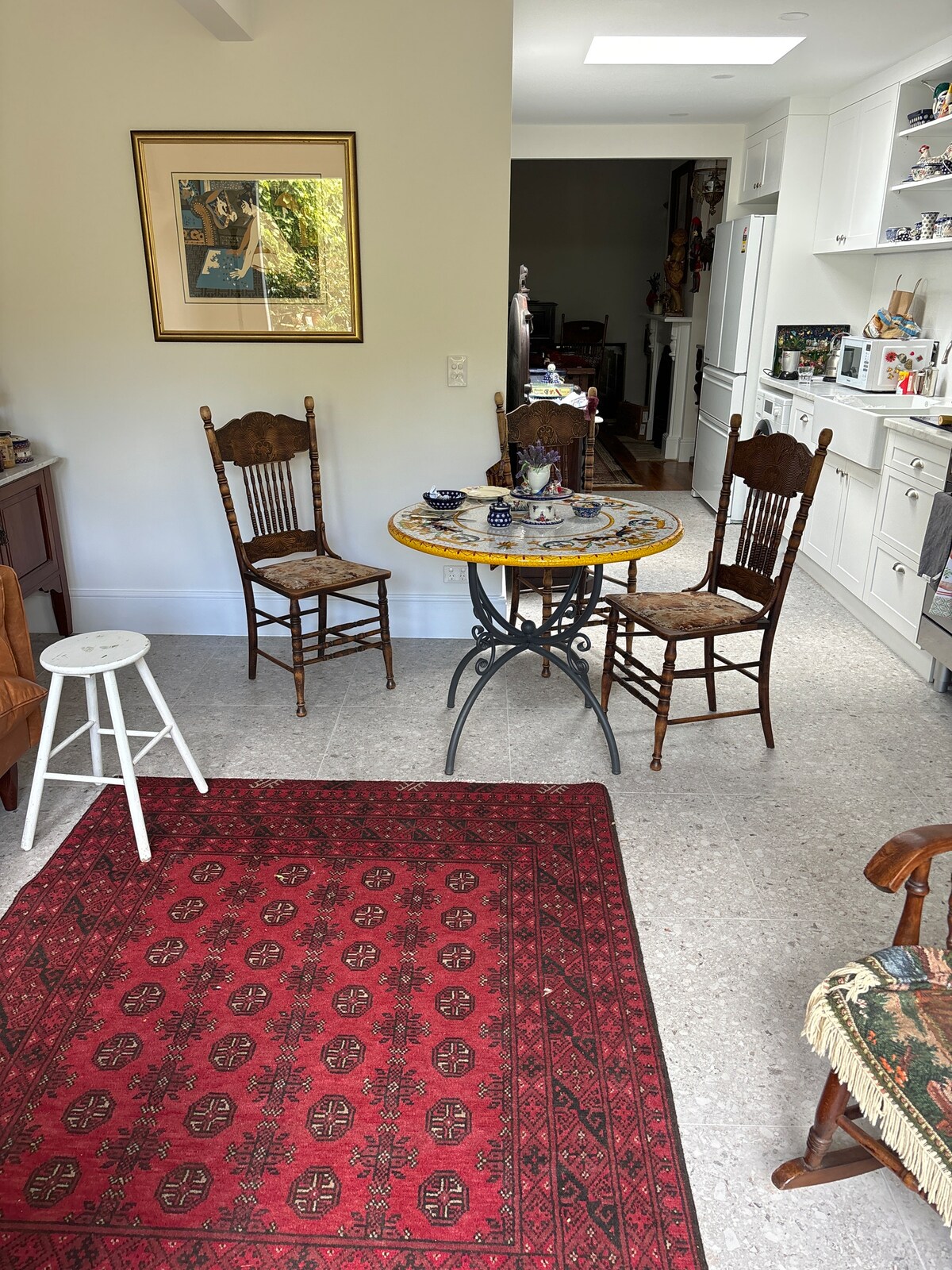 Guests can enjoy the view from the lounge for some leafy repose. You can relax on the front verandah. Smokers can have a puff there too. Please ask me for a tray for your butt. You can wander where you please, with the exception of the reserved bedrooms. Many of my collections have a particular story from my own intrepid travels. Everything is dear to me, whether it be a childhood memory or a souvenir from abroad. I love to hear the piano being played. Ask me if you would like some particular music added to the Sono. I am a lover of jazz but that may not suit you.