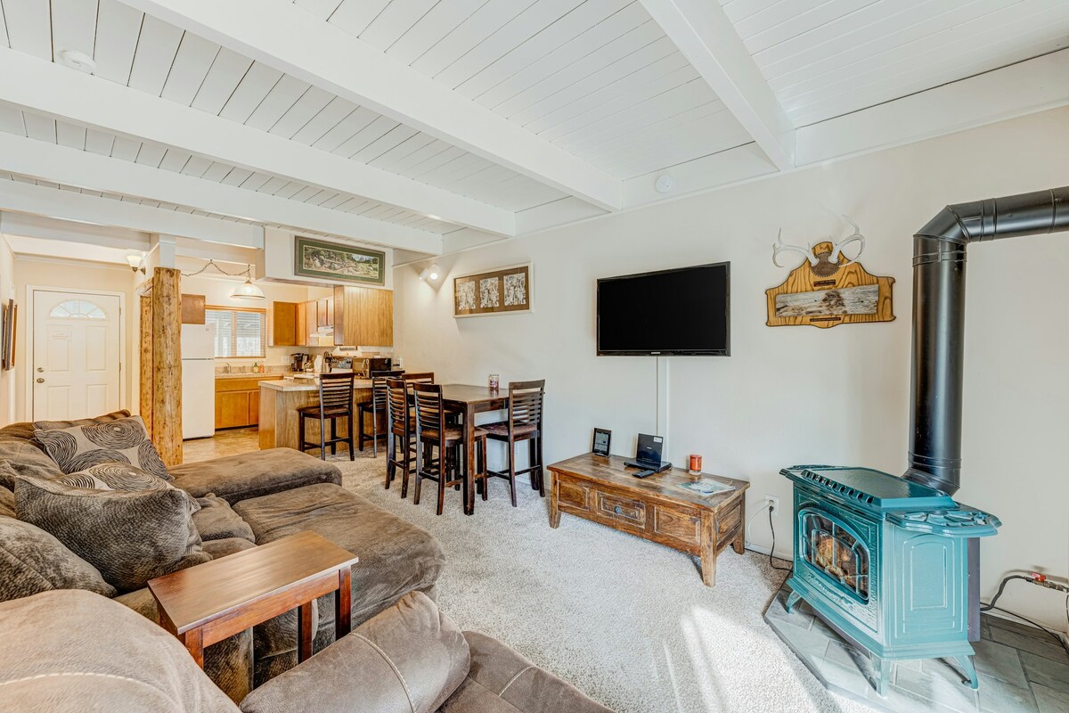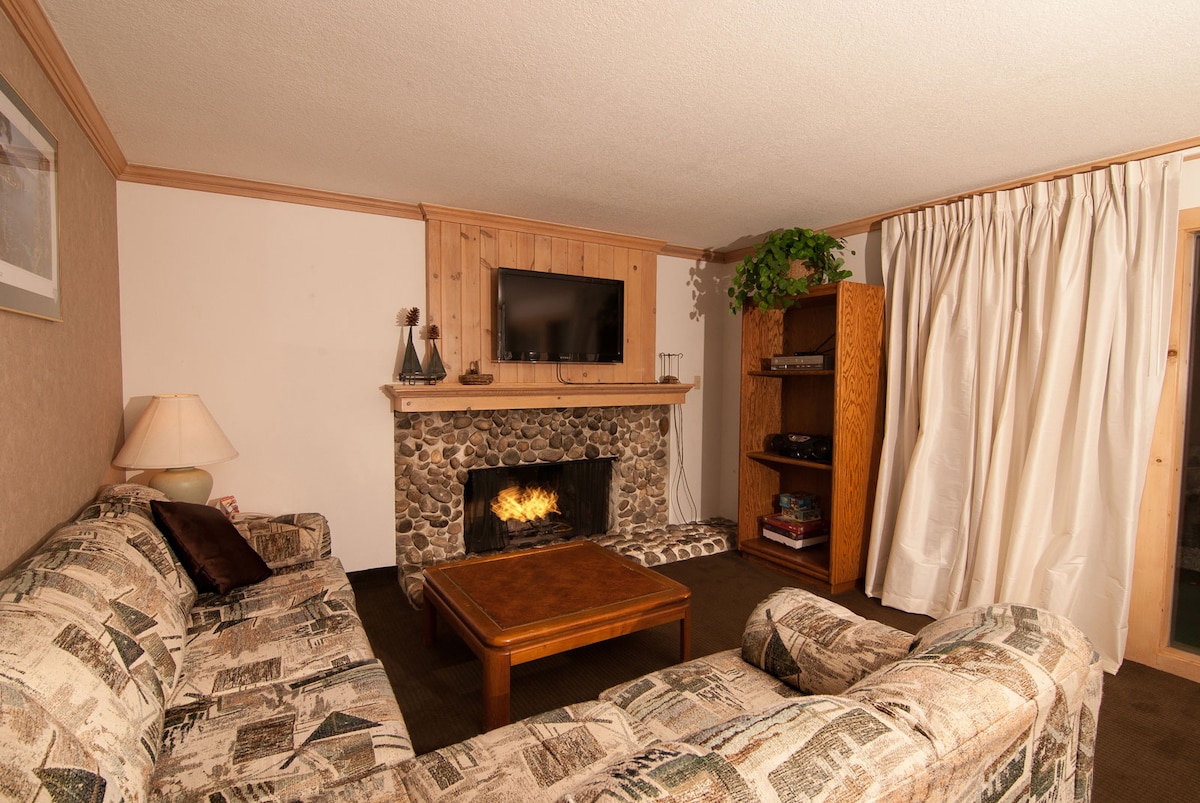 Back at your condo, watch your favorite streaming service as you relax in the living room or play some of the included board games. There is also a kayak and sleds to use if you'd like to traverse the lake or ride down steep hills. Use the fully-equipped kitchen as you see fit and make something as simple as a cup of coffee or as complex as an entire meal for the group. Indulge at the dining table or bring your freshly-brewed coffee out to the deck. Before bed, start up the fireplace and bask in the warm ambiance with a good book or great company before going to sleep for the night.