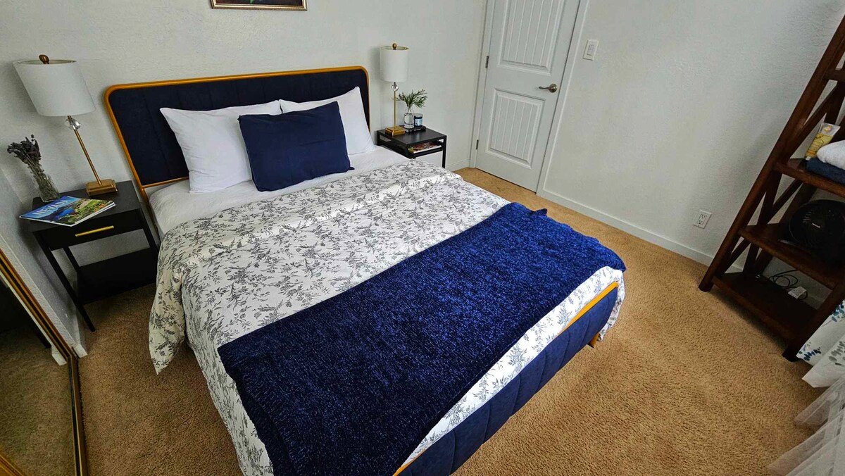 You’ll be staying in a sunny room with a comfy pillowtop queen size bed and cotton bedding. The room is best suited for a solo traveler and is located in an 850 sq ft apartment. Please note that the second bedroom is occupied by the hosts. The shared bathroom is 2 steps away from your bedroom and comes with towels and toiletries provided.