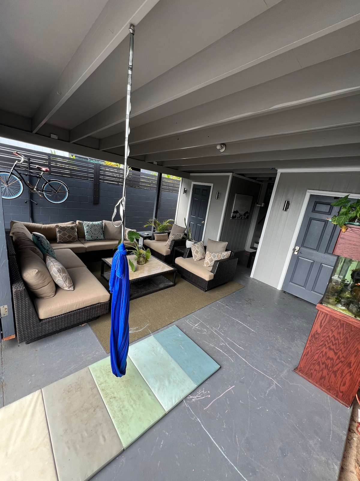 Guests have access to the lanai/porch outside the French Doors of the unit. Access to BBQ grill. The also have access swimming pool and lanai by the pool, the hammocks in the Buddha Garden in the back, and the laundry in the main house (use once per 4 days stay please, conserve water and electricity, 3rd most expensive in the world, highest in US). WHEN YOU GO TO THE POOL, PLEASE GO OUT THE FRENCH DOORS AND ALONG THE GARDEN PORCH - to give me and others privacy do not go along the south side bedroom windows. You have free use of yoga mats, blocks & bolsters. I will provide bath towels, beach towels, daypack, cooler w blu ice packs, and beach mats. Upon request you can rent bicycles (3 mt, two cruisers), kayaks, surfboard, body boards. There is only one surfboard, a 9'3", and it rents for $20/day. Kayaks are $20/day (have a one person and a two person, same rate), also have straps and padding for car to carry them. Bikes are $10/day pp for 1 day, $8/day pp for 2-3 days, $6/day pp for 4 days, $30/week. Body boards are $4/day or 2 for $7/day. Always willing to work out a package deal if you want bikes and kayaks, or any combo - the more items and more days, the better the deal.