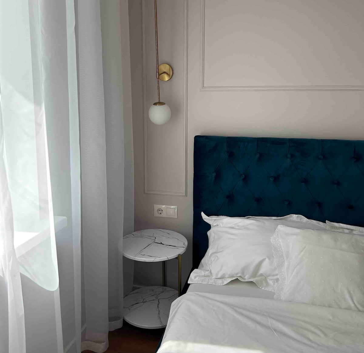 The first room is in the neoclassical style. There's a new large Queen-size double bed with a brand new deluxe mattress. I make sure you sleep comfortably.