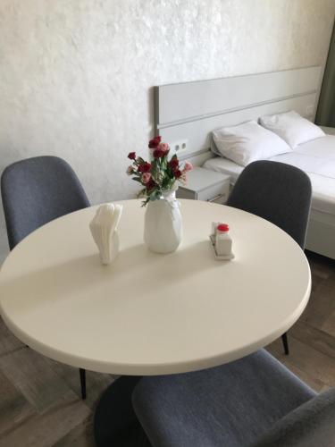 New bright apartments in a new house 15 minutes from the center. The apartments are located on the 7th floor with a total area of 42 sq / m. It features a kitchen with kitchenware and appliances. Guests can cook their own meals. Also linen and towels. There is free WI-FI, TV, washing machine, toaster, microwave, hob, kettle, fridge, hairdryer, iron. Forbidden: pets, parties, smoking in the apartment.