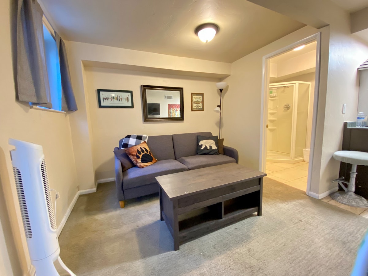 Private guest suite with entire lower floor of the home. Kitchenette with hot plate, toaster oven, coffee maker and mini fridge. Ask about listing that includes the whole house. Enjoy the ambience and make lasting memories with your guests in the backdrop of this quaint mountain home. Excellent value for a family/friends getaway as you can sleep up to 8! Please know that footsteps/voices may be heard from above. The owner has adverse breathing condition and can’t accommodate service animals.