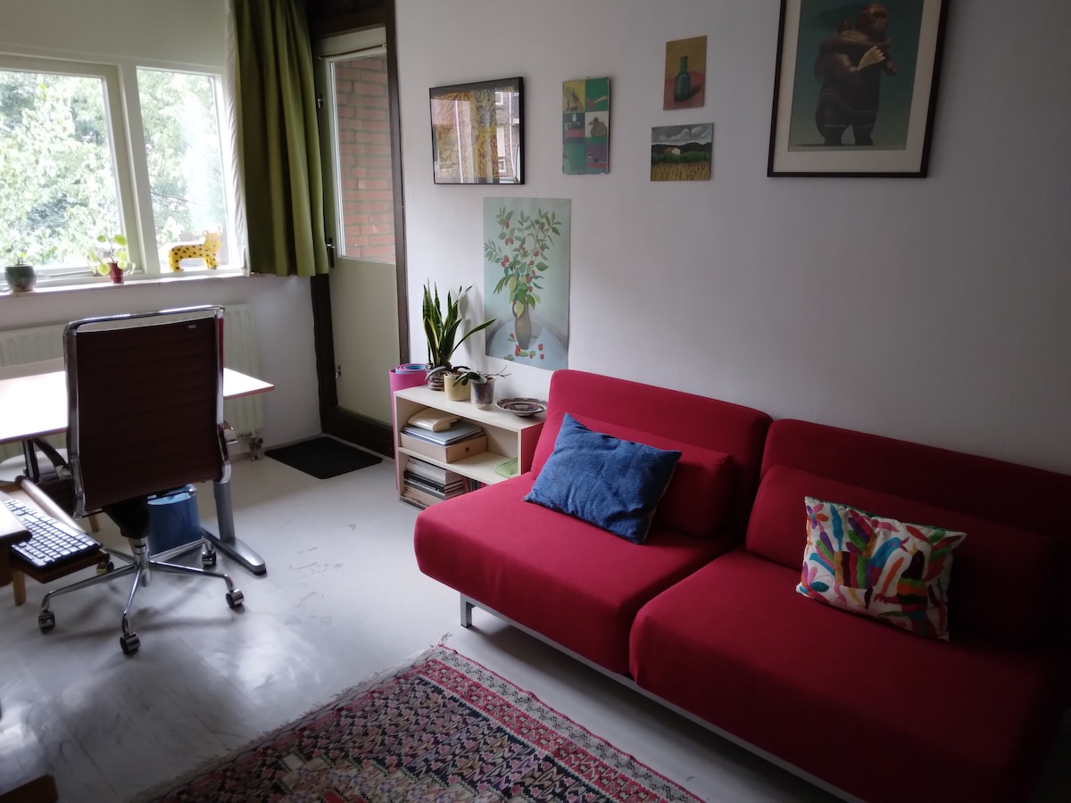 This check-in-yourself studio is located on the ground floor of a large family house consisting of three floors, so we will hardly notice each other's presence when there. It can happen though, that sometime I want to use the washing machine or enter the garden. The passage of the sanitary room of the studio will then have to be entered. But you can lock and darken this space (from the inside), so privacy on your end is always guaranteed.