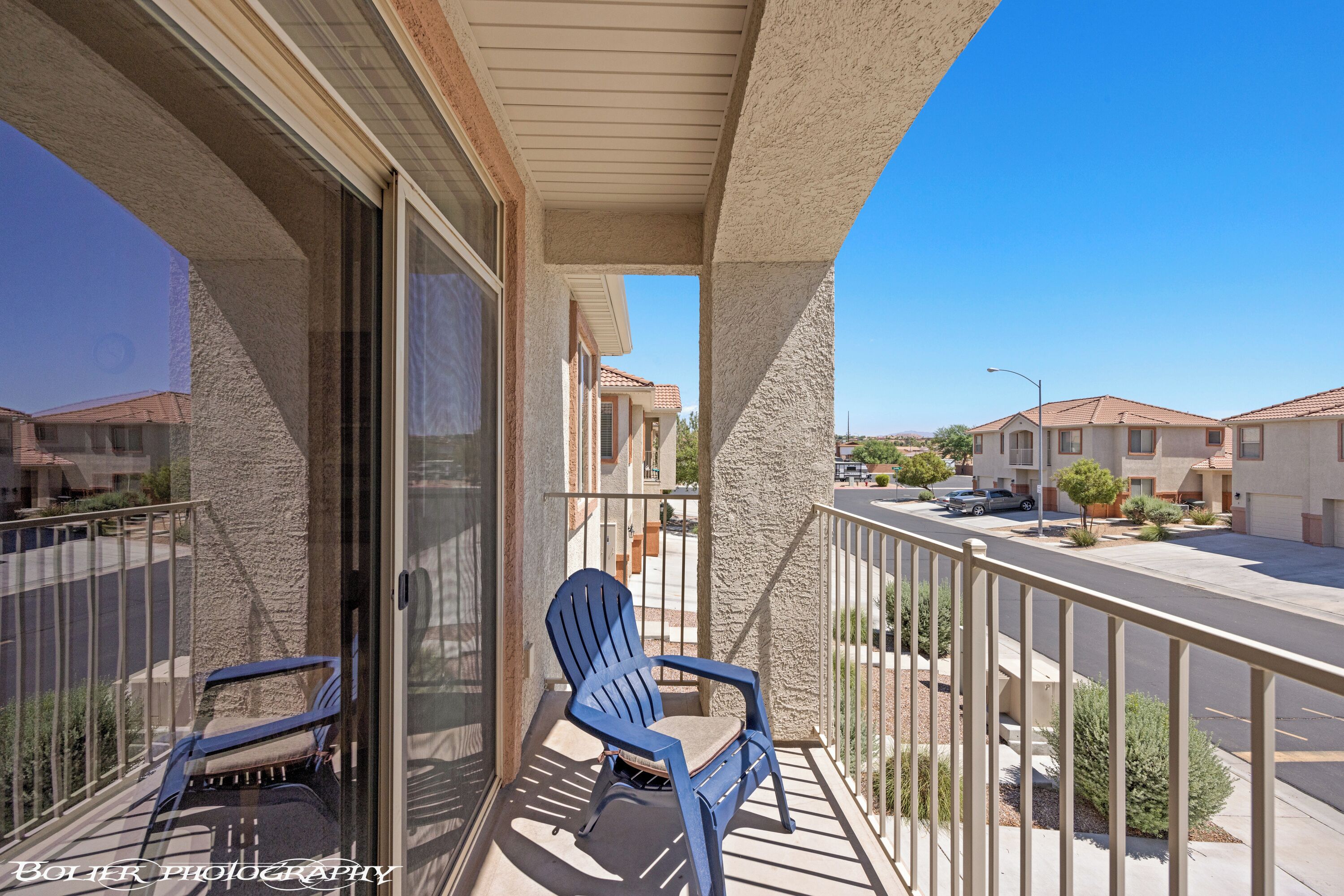 Comfortable modern vibe condo w/balcony to enjoy your morning coffee with a beautiful view of the mountains. Enclosed parking garage. Two bedrooms can sleep up to six adults. The complex is well maintained with a swimming pool, hot tub, playground and exercise room on-site. A park with playground and a dog park. Centrally located at the heart of Mesquite, 2 minutes off the freeway and minutes to the casinos and 7 PGA golf courses.