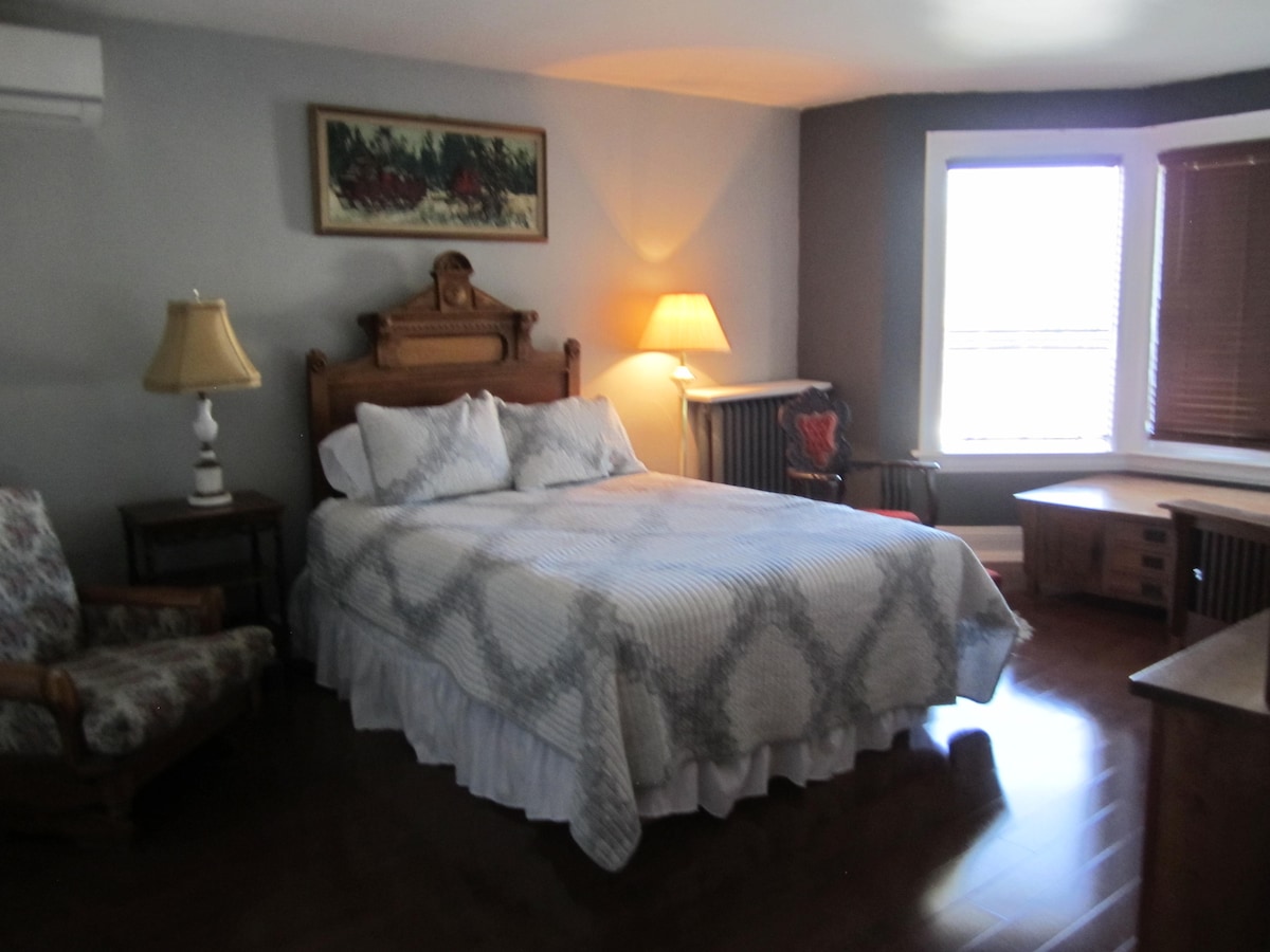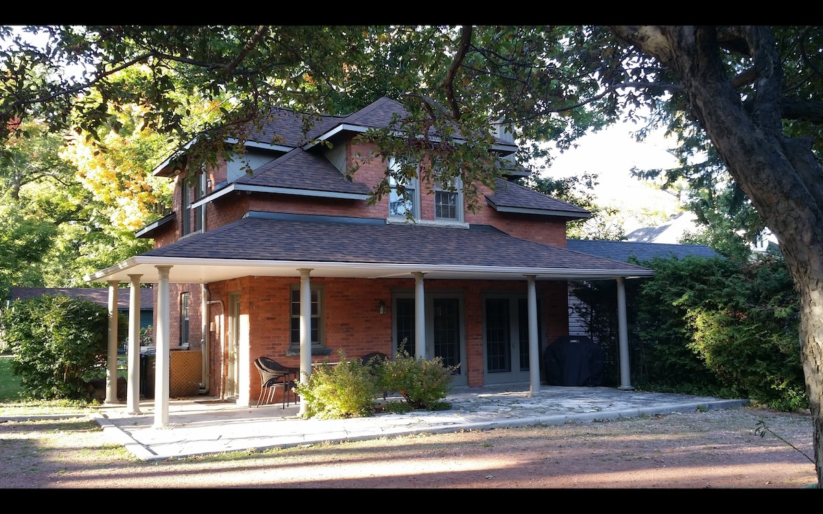 Cozy, century home centrally located in a quiet residential area walking distance from quaint, downtown Midland. Peaceful getaway, located minutes away from trails and Georgian Bay. The beauty of nature surrounds you so take in sights of the beaches, marinas, boat cruise of the islands, Wye Marsh, Awenda National Park, farmer's market and stands, local summer festivals, and more. Experience the Georgian Bay area and all it has to offer! The house features 2 bedrooms inside and a sofa bed in the living room for extra space. The 3rd bedroom is located outside as a seasonal cottage, patio suite. You're sure to make fantastic memories with a stay at our place.