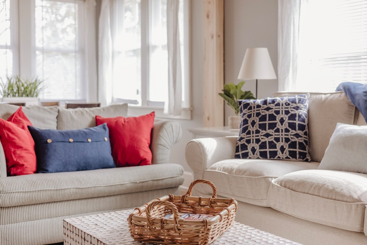 This little bungalow is perfect for a small family or group of friends looking to come to New Buffalo and enjoy a slower pace of life. Walk through the front door into an open-concept space. The living area features cozy seating and a smart TV with streaming services.