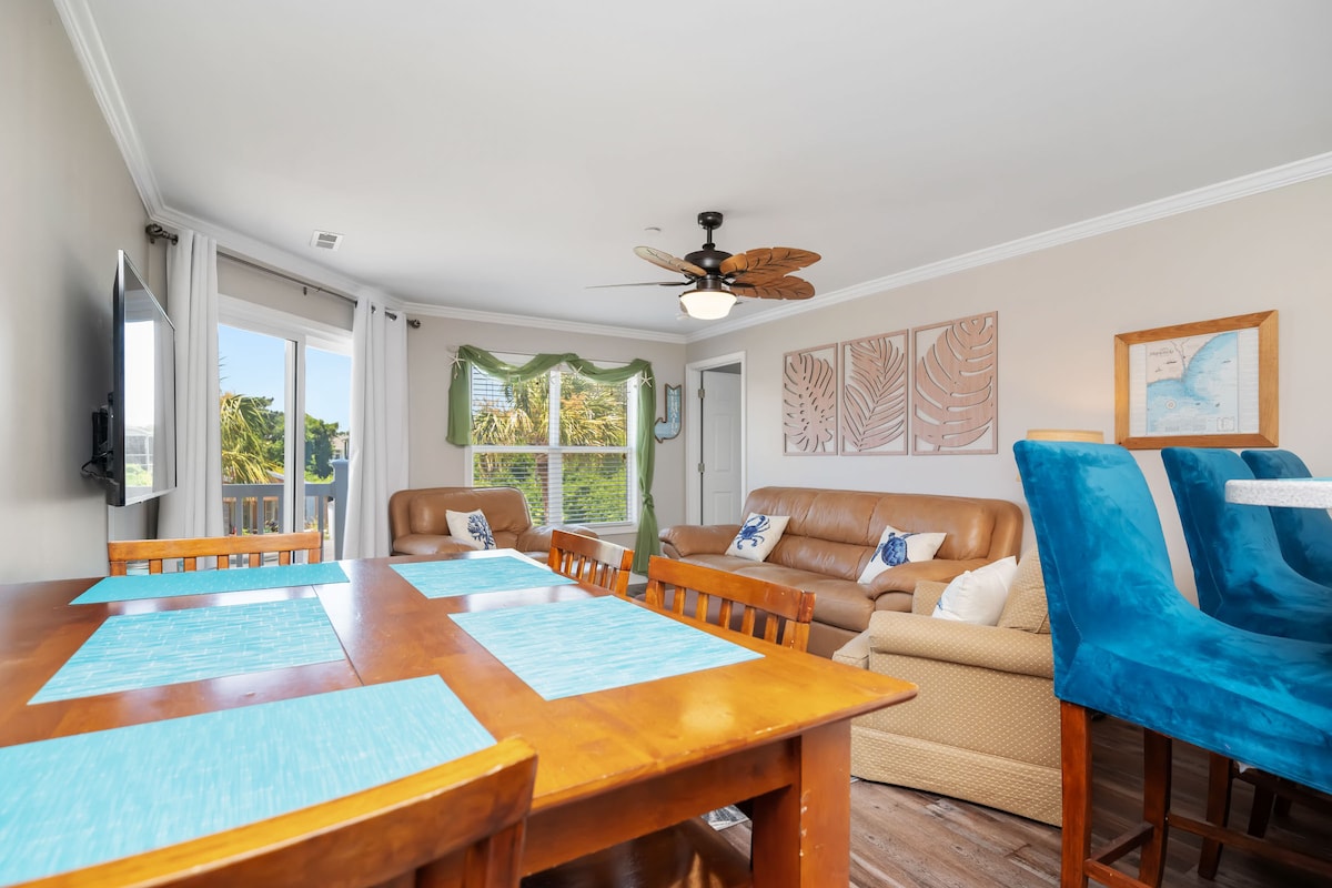 Looking for a budget-friendly Oak Island vacation rental a block from the beach? Nestled in the quiet and scenic Caswell Dunes community, this beautifully remodeled condo is roughly a 1000 foot walk from the inviting sands of Caswell Beach. No need to pay for parking when the ocean is just a short walk away!