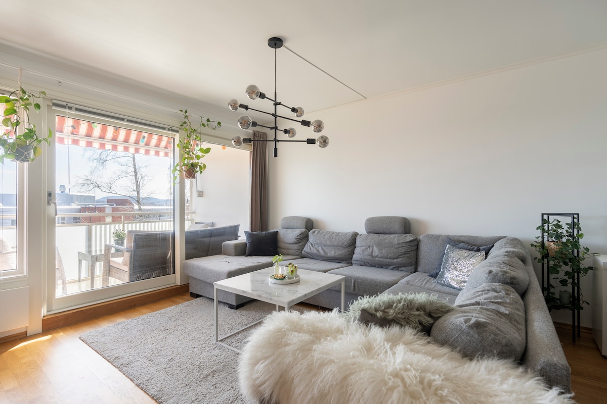 Two bedroom apartment very close to mall and the busstop. We also have free parking! Our apartment has a lot of natural light and a quiet atmosphere.