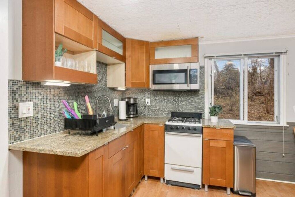 Smaller airy rooms that are above grade. Not a basement or attic conversion. No one is below your ceramic tile floors or above you in the attic space. Usual peace & quiet comes to mind. Our efficient gas boiler provides radiant baseboard heat warming the space in the chilly months. Brand new (October 2024)Central A/C cools it in the heat of summer.