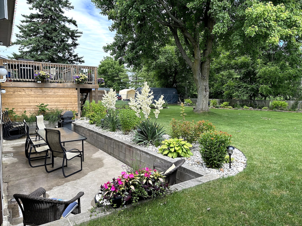 - Plenty of private outdoor space for this cottage includes a large patio deck, propane BBQ and propane fire table, private grassy side yard