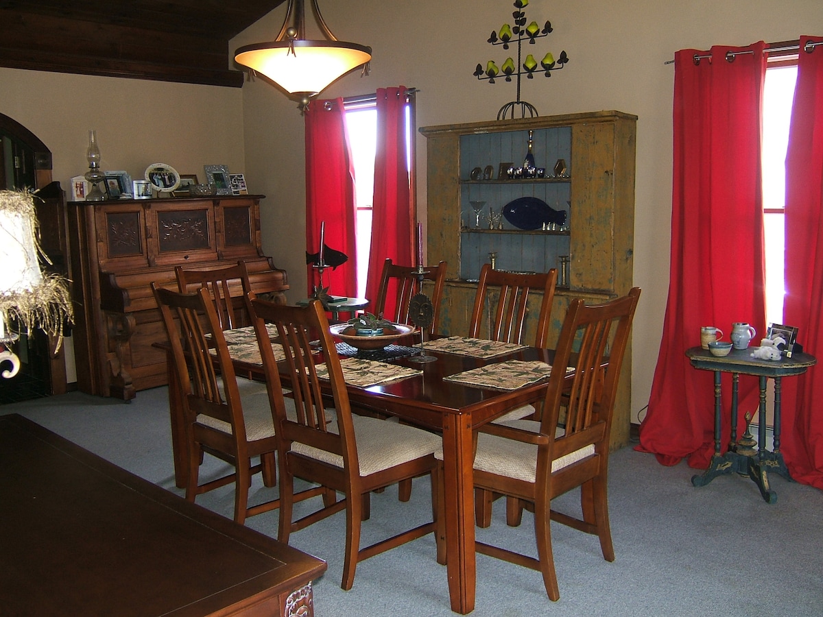 The fully equipped kitchenette has everything needed to prepare breakfast or light meals as all necessary dishes and cookware are supplied. It has granite countertops, a full size fridge/freezer, a stove top (no oven), microwave, coffee maker, toaster and a bistro dining set. Wi-Fi is not guaranteed, we have Ethernet connections for your use.